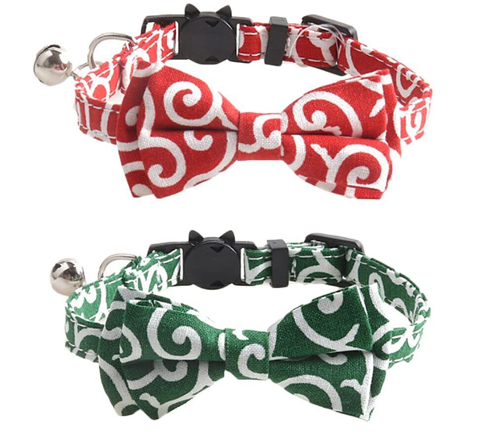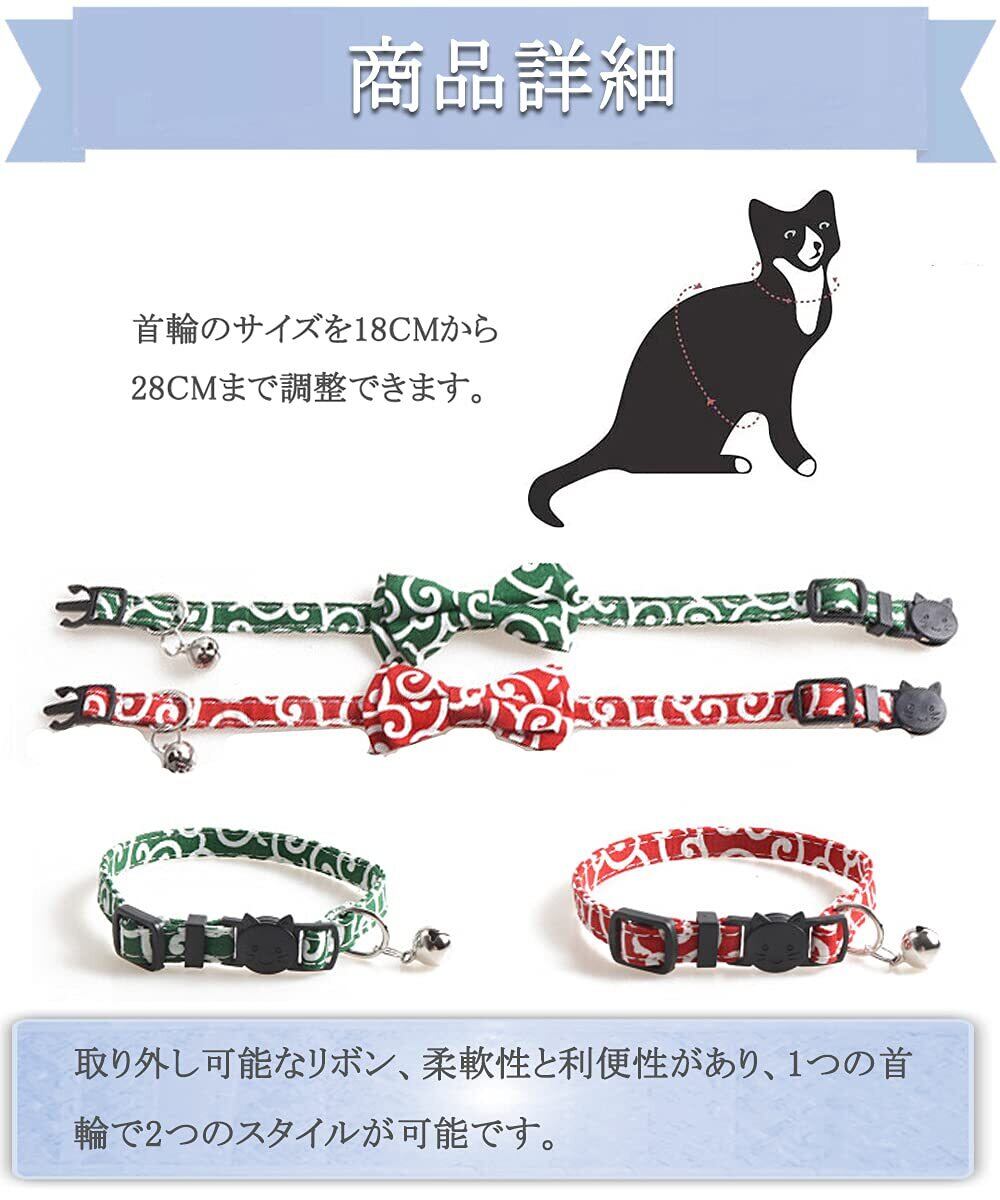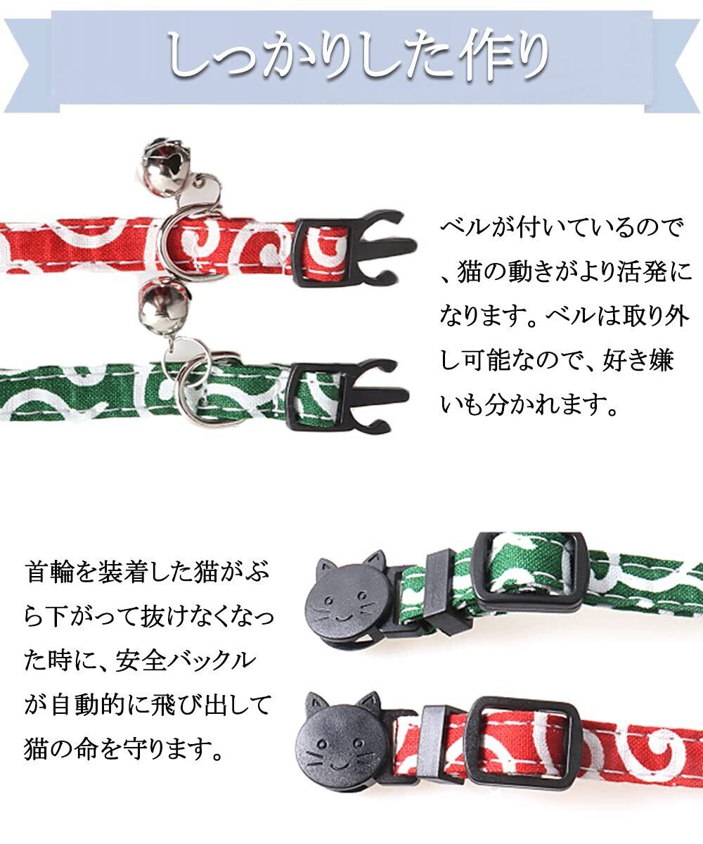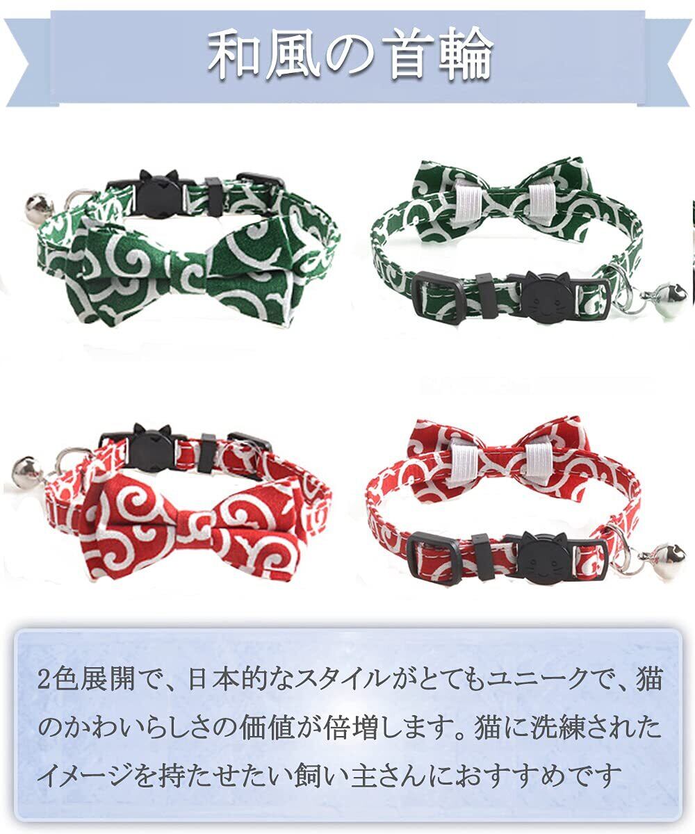 YFFSFDC 猫首輪 蝶結び 犬猫用 ペット首輪 調整可能 セーフティバックル付 可愛い 軽量 和風 唐草モダン かわいい 鈴付き