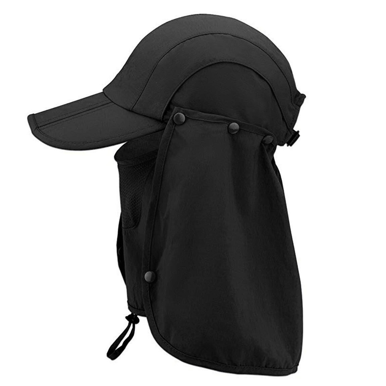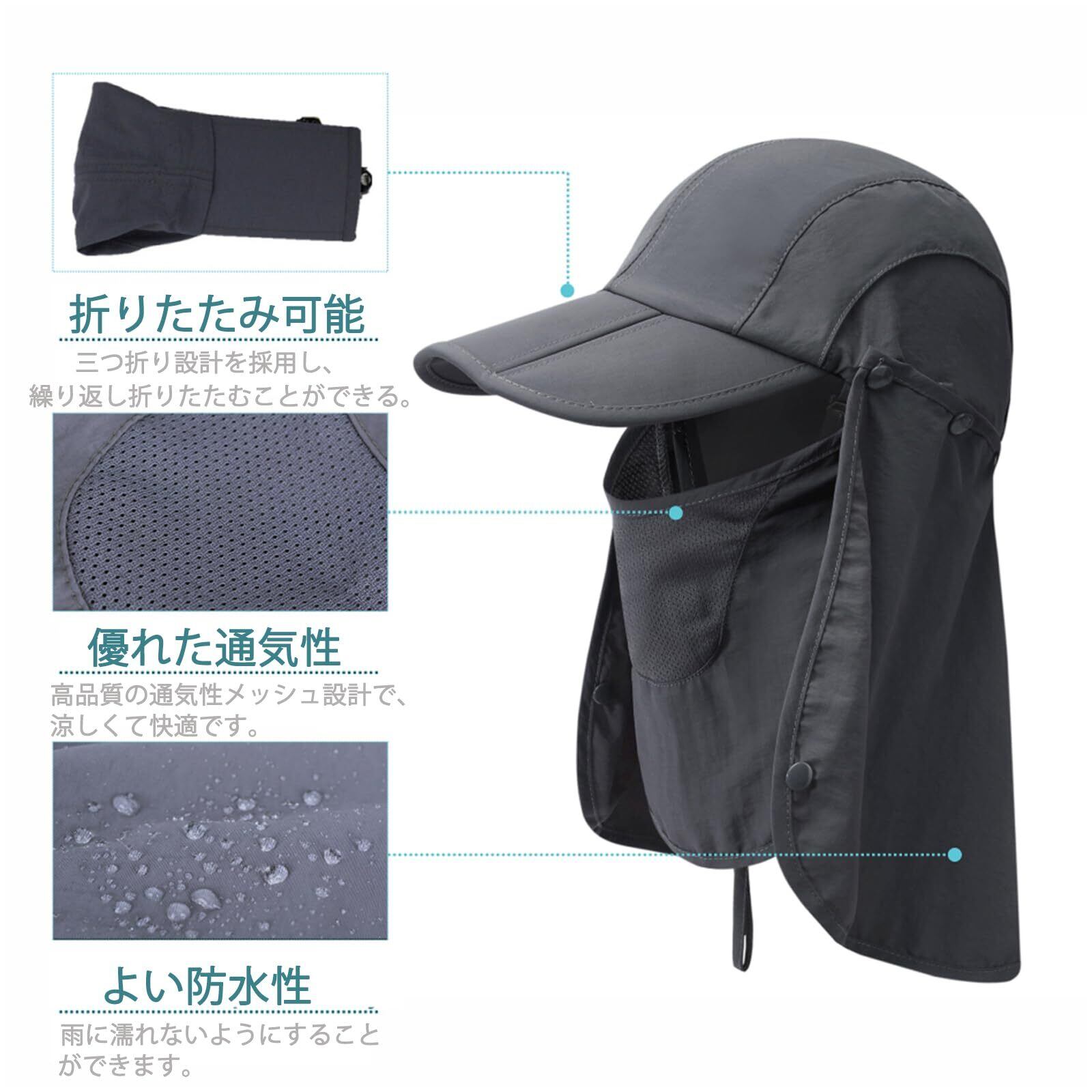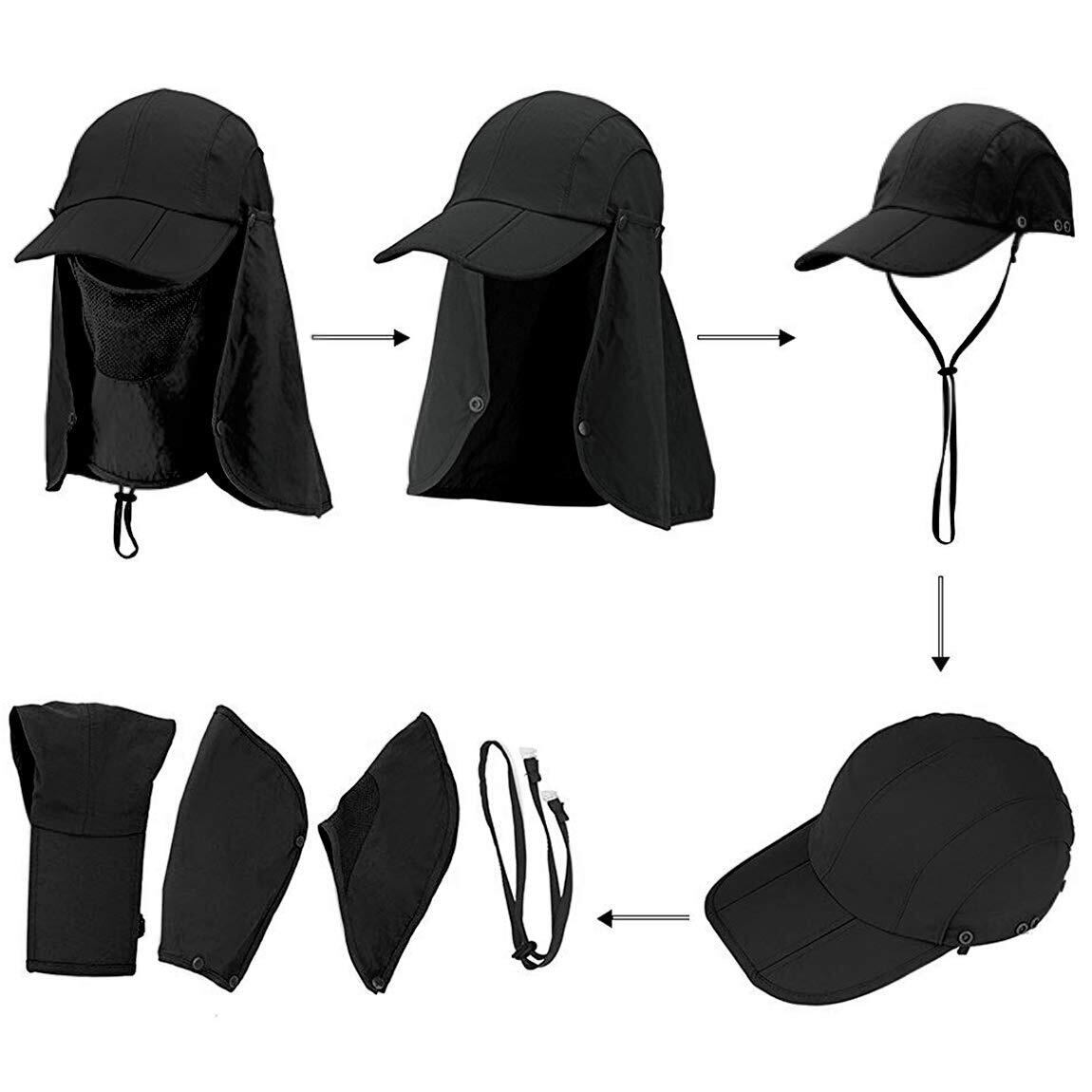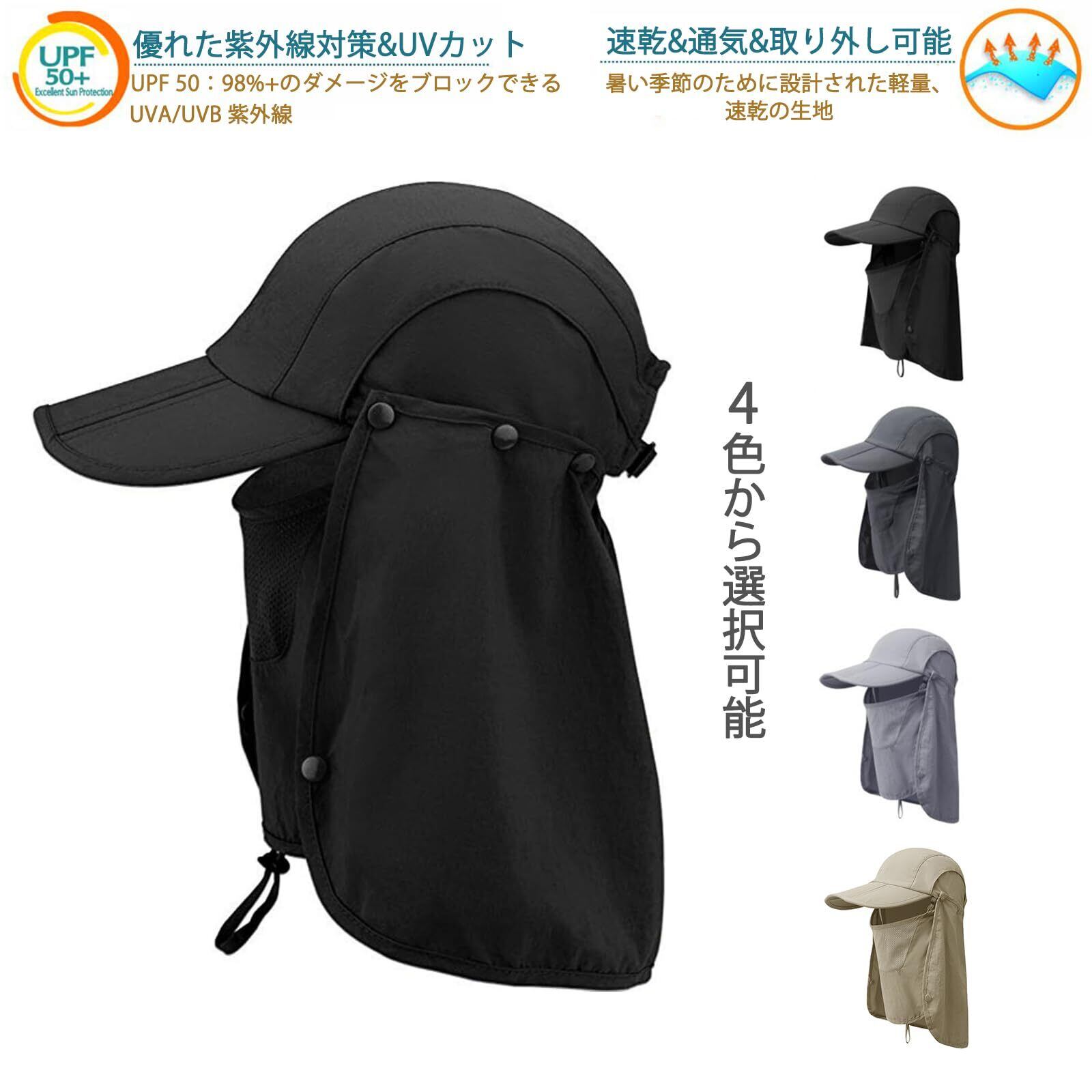 iBasingo アウトドア UVカット 帽子 3Way 360度UVカット 日除け 折りたたみ可能 紫外線対策 花粉対策 取り外し可能 フェイスカバー スポーツ 登山 農作業 ガーデニング キャップ ランニング 釣り メンズレディース兼用 ブラック BVH19
