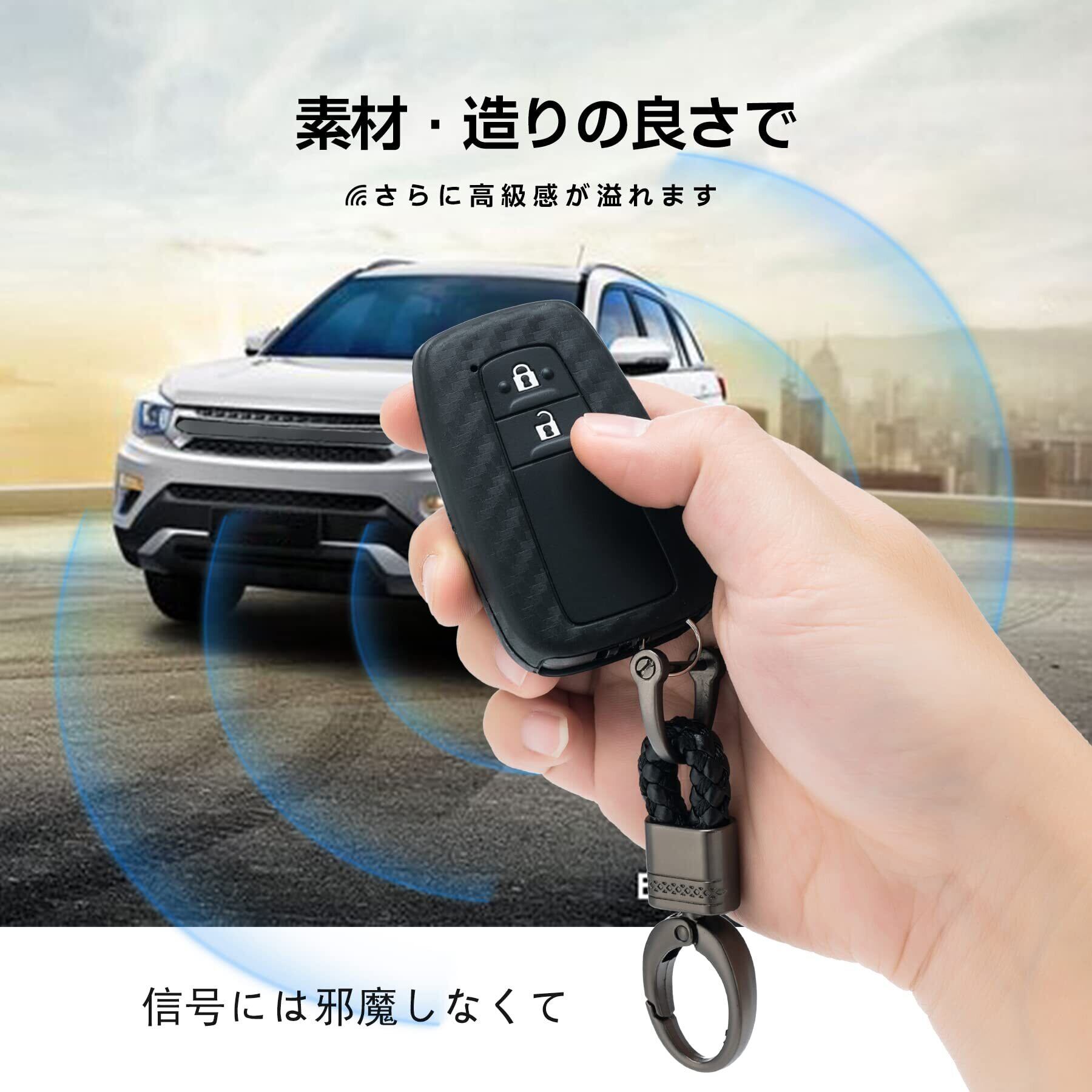トヨタキーケース,シリコン製炭素調 安で でトヨタのキーの全面保護 トヨタキーホルダー 適合C-HR プリウス 50系 新型 カローラ RAV4 50系 カムリ70系 ランドクルーザー プラド 150 後期 専用 キーケース(マルチカラー)