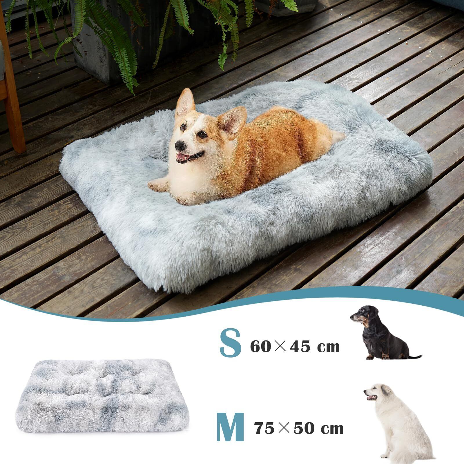 ULIGOTA ペット用クッション 犬 猫 ベッド クッション マット ふわふわ 滑り止め 犬ベッド ペットマット 暖か 寒さ対策 ケージ クッション 室内用 秋冬用 M (75*50cm ホワイトグレー)