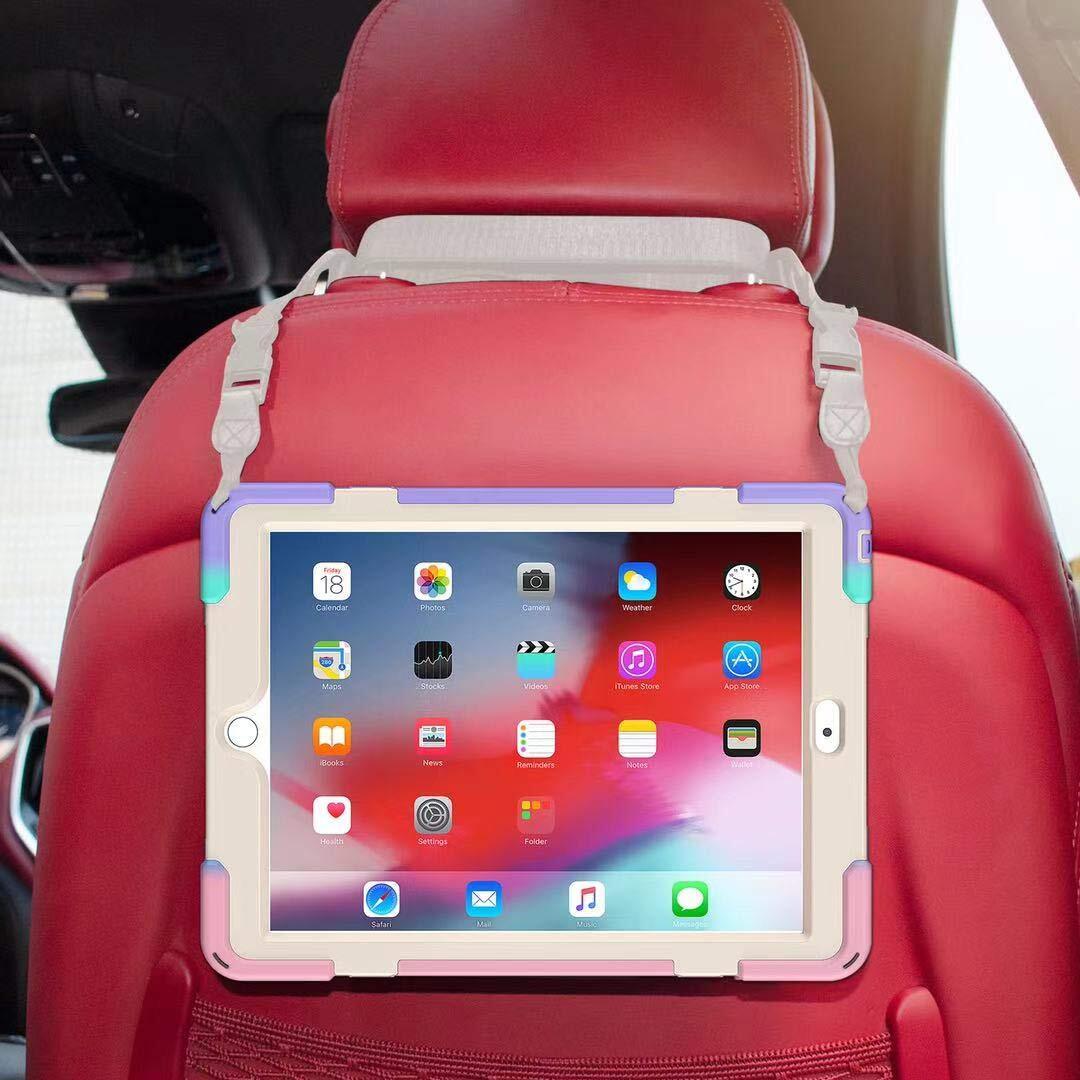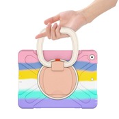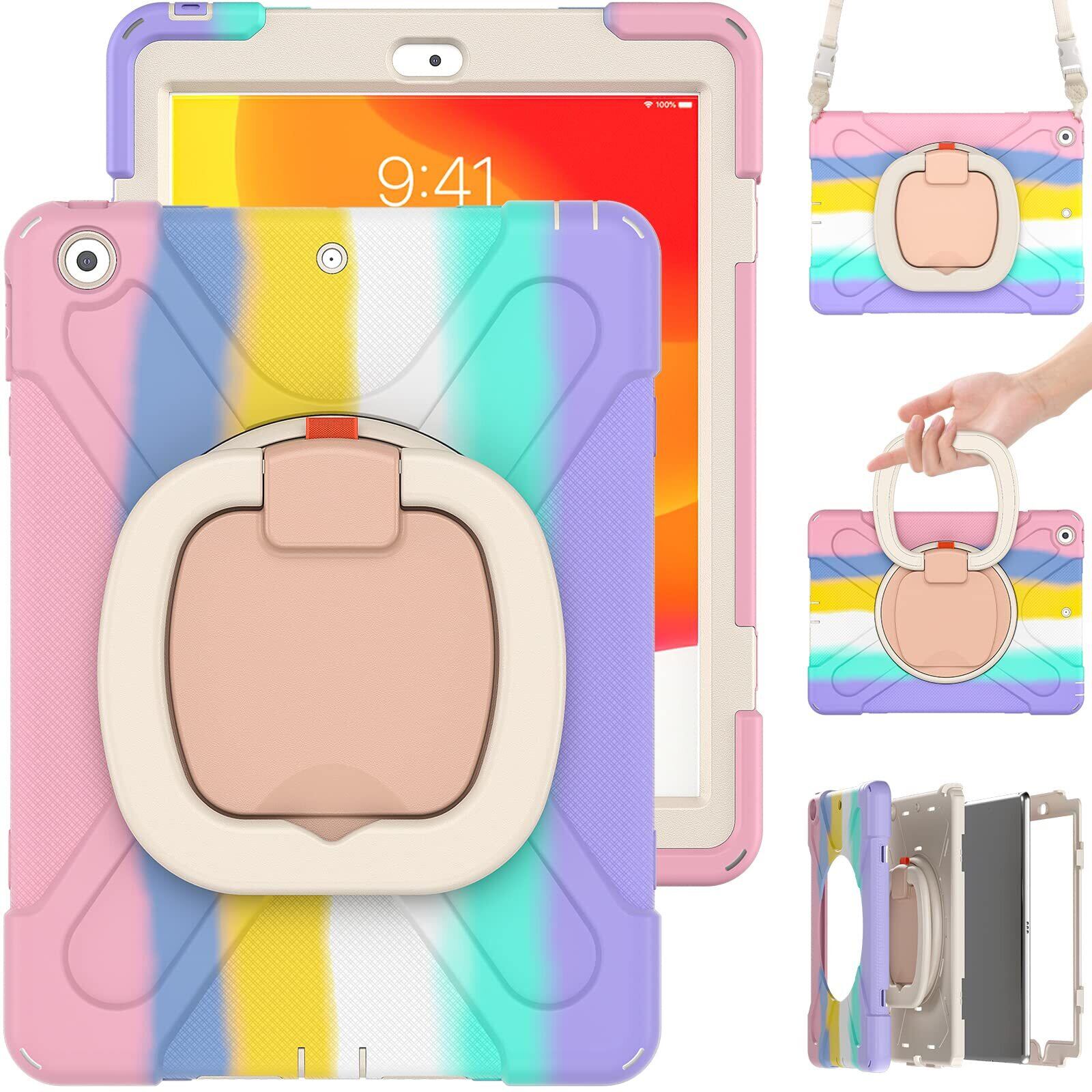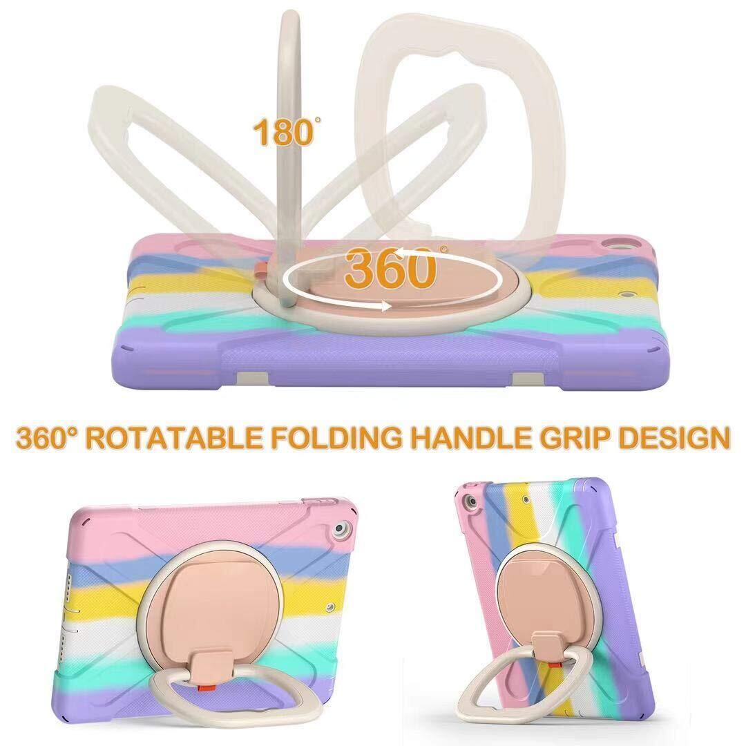 肩掛け iPad 第7世代/8世代/9世代 ケース ショルダーストラップ 360°回転ベルト スタンド ペンシル収納 虹色 レインボー 米軍MIL資格 耐衝撃 iPad 10.2インチ iPad7 iPad8 iPad9 ケース キッズ かわいい て丈夫 子供 アウトドア リング 持ち手付き 斜め掛け 落下防止 (iPad9/iPad8/iPad7(10.2), カラフル(ピンク))