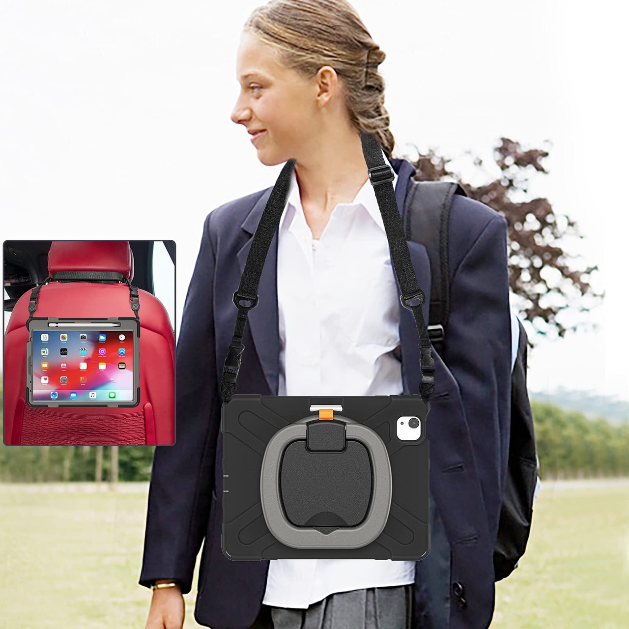 【調節できるショルダーベルト】:肩掛けバッグや車の後部座席のエンターテイメント用などシーンにあわせて調節・取り外し・伸長可能なショルダーストラップ。 ビジネス、アウトドア、学校、家事など様々なシーンで大活躍。子供、キッズがいる家庭にもおすすめ。