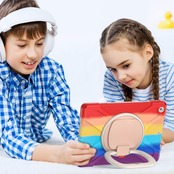 【スタンド機能】:動画鑑賞やタイピングなどシーンに合わせて角度を変えられる360度回転、段階調整可能スタンド。レインボーデザインで、カジュアルながらオシャレにきまる。