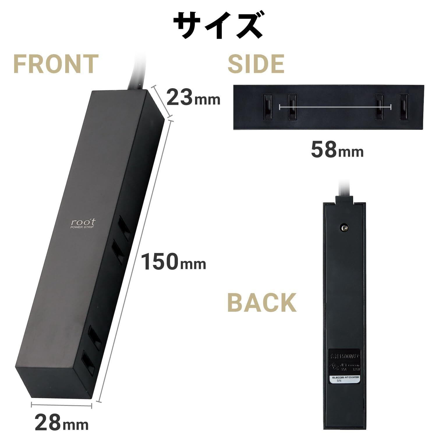 エレコム 電源タップ 見せるインテリア roo't(ルオット) 4個口 2.5m ブラック AVT-D3-2425BK