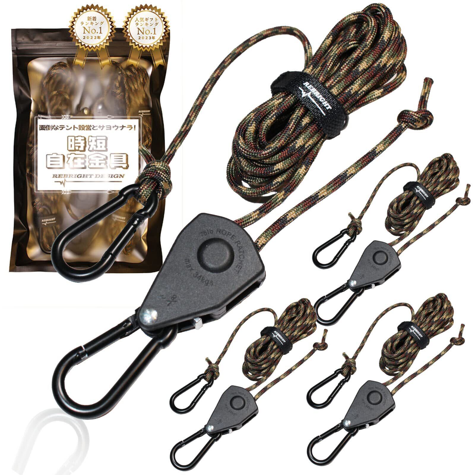 REBRIGHT DESIGN 自在金具 時短自在金具 2個/4個セット 時短設営 キャンプ用品 タープ テント ガイロープ パラコード ソロキャンプ アウトドア (4個セット 迷彩)