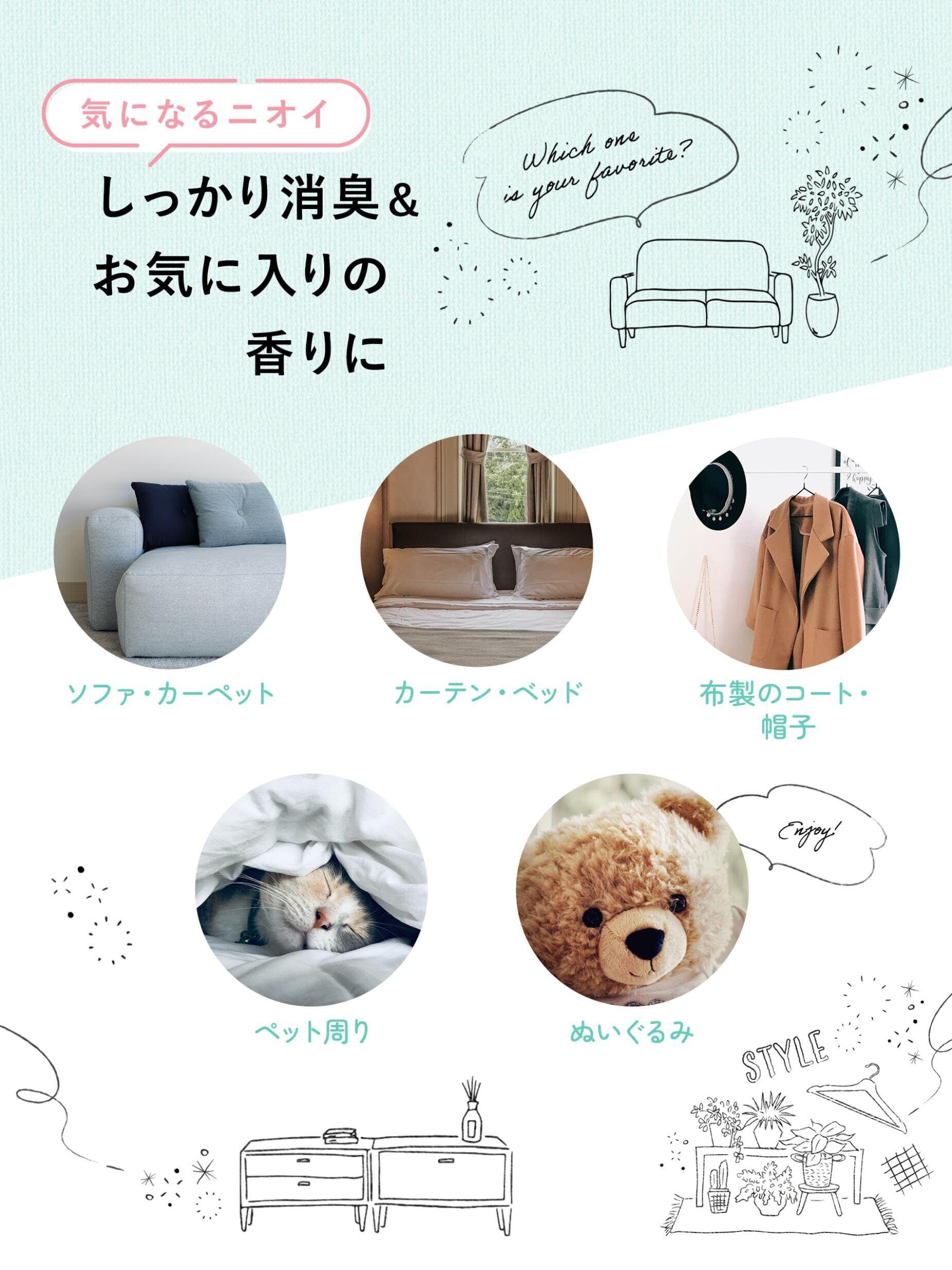 衣類や洗濯できないカーテン・ソファー等にもラグジュアリーな香りを