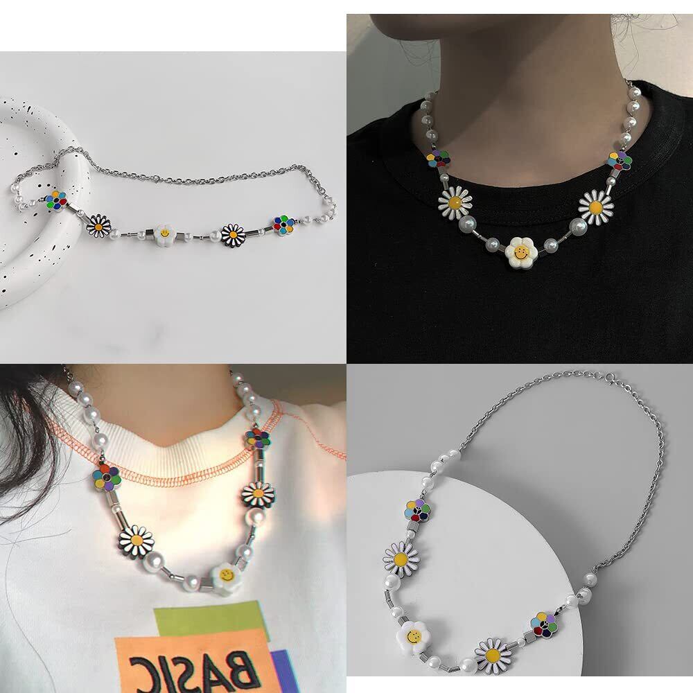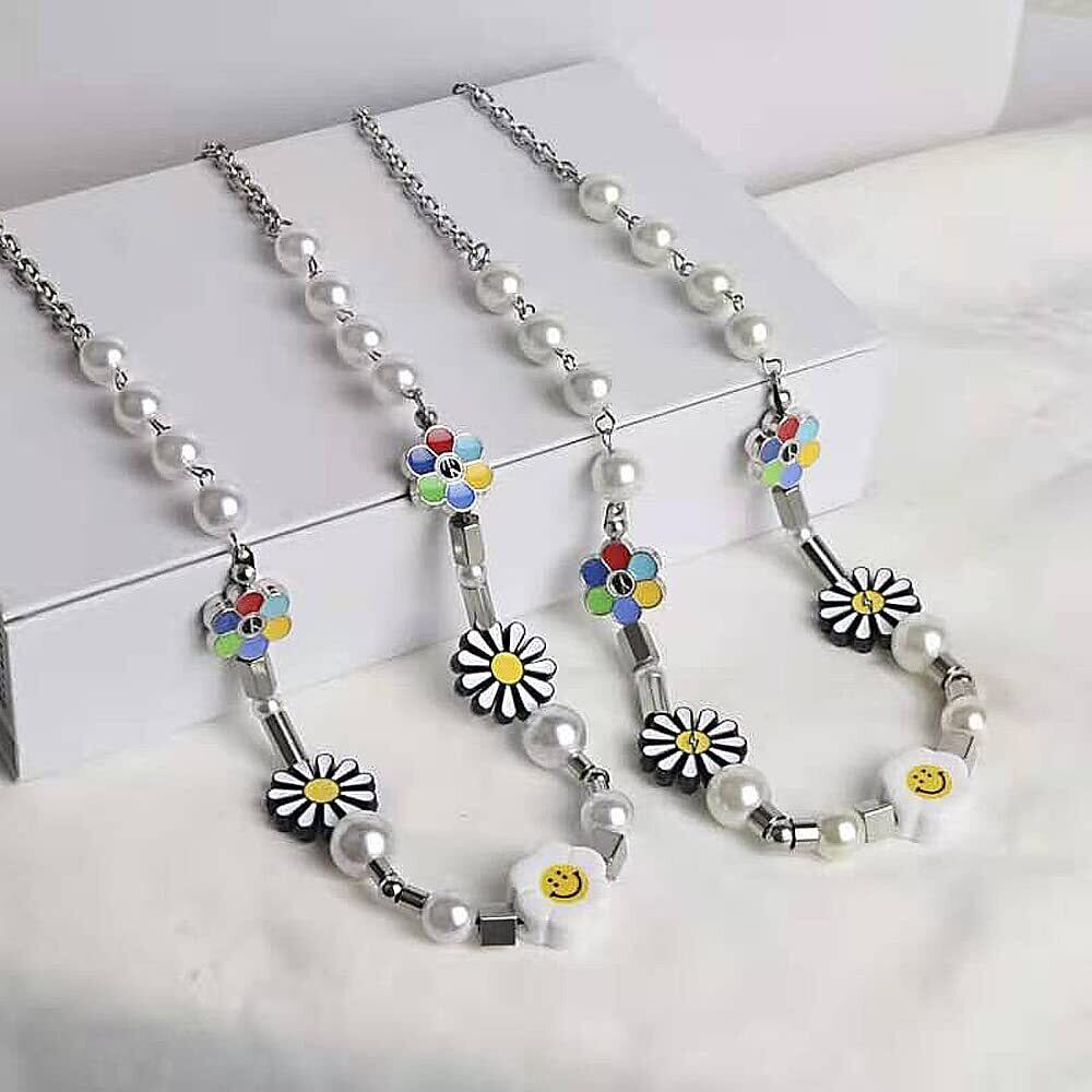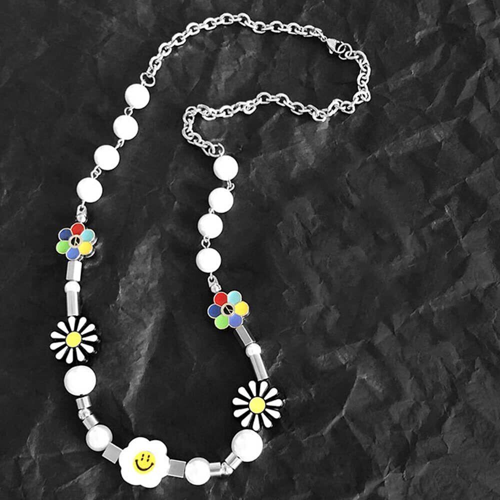 【かわいい デザインのネックレス】太陽の花&スマイリーがデザインした人気の笑顔と大きなパールビーズのネックレス。チェーンスタイル、あらゆるシーンで美しくキラキラとマッチするユニセックス、ハイエンドの人気ユニバーサルデザイン。