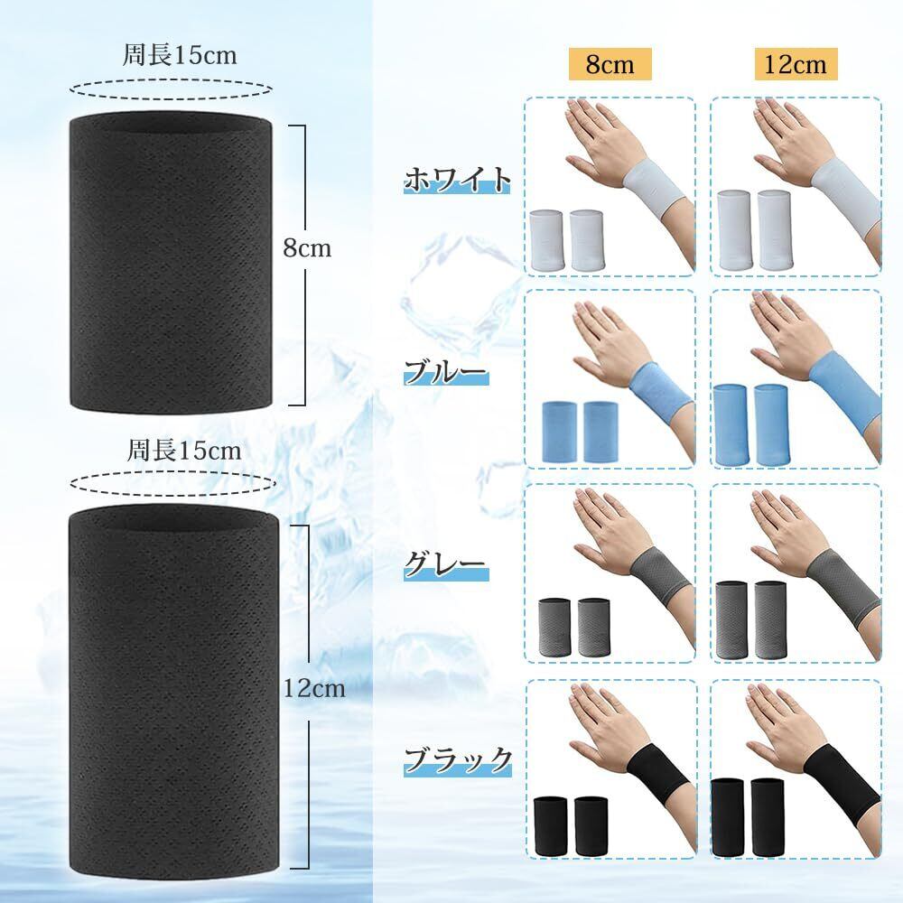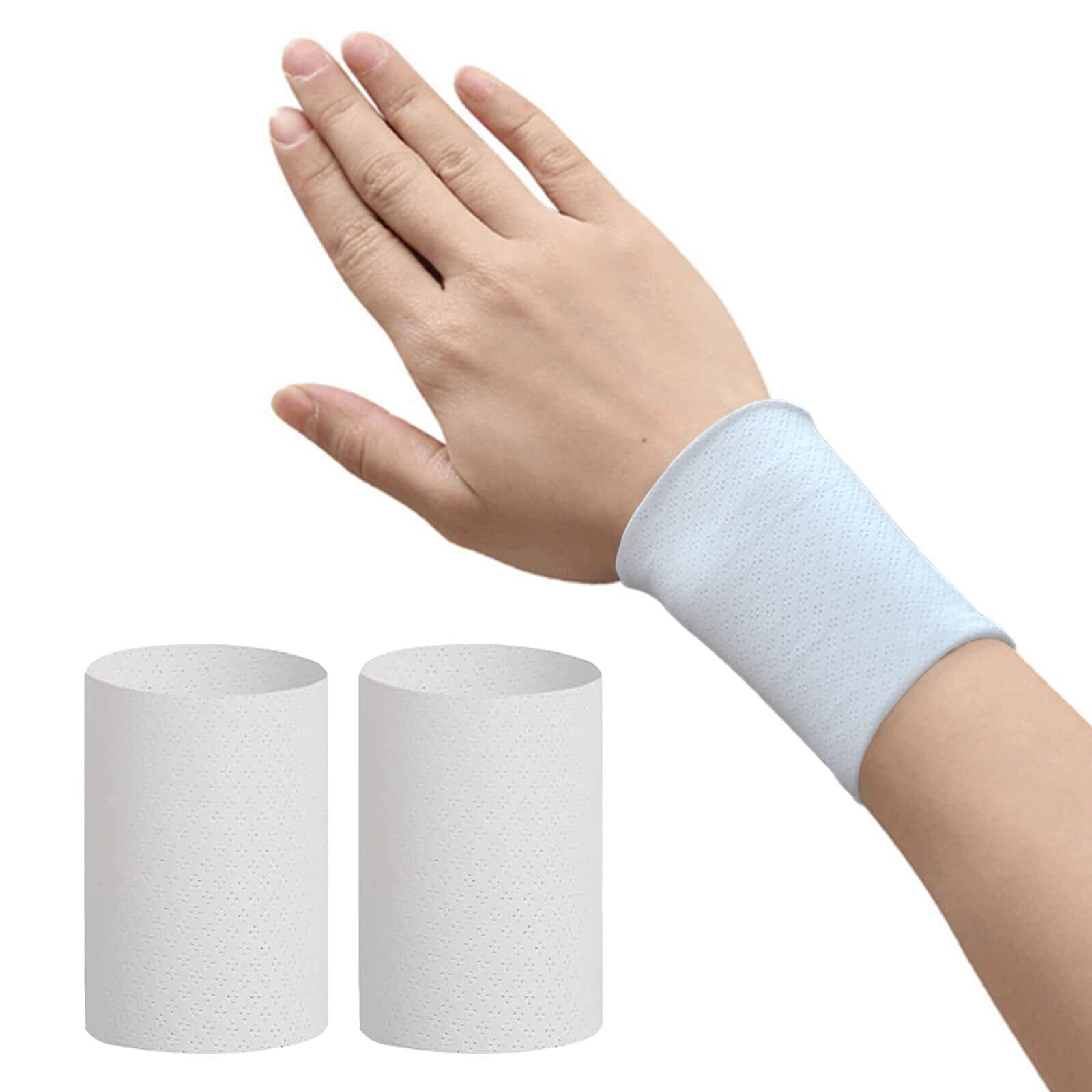 DFsucces リストバンド 薄手 2枚セット 冷感 野球 テニス ランニングの汗吸収 速乾 通気性 ロング ショート スポーツ ヨガ 筋トレ スポーツ用 夏の日焼け防止対策 男女兼用 (ホワイト, 8cm)