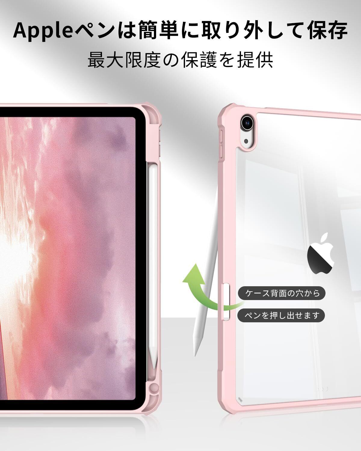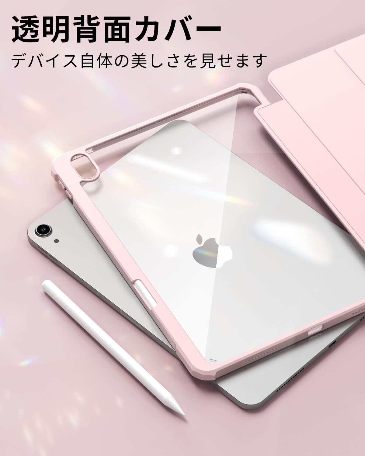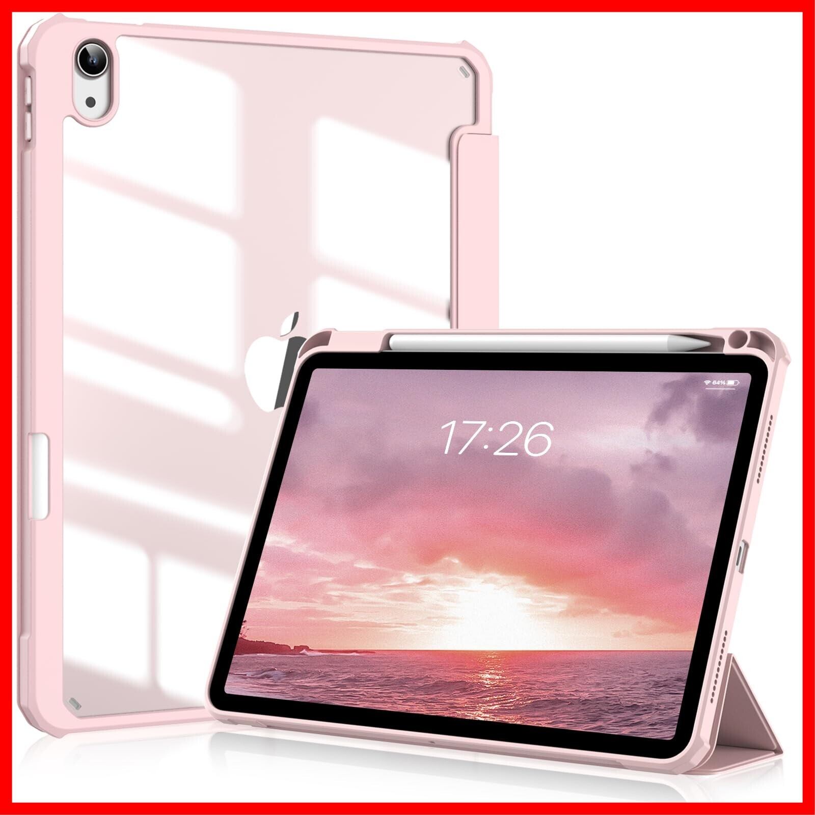 SQBEBS iPad 11世代 ケース A16 (2025) iPad 第11/10世代 10.9インチ (2022) 透明バックカバー ペンシルホルダー付き 三つ折りスタンド Touch IDとオートスリープ機能対応 軽量 薄型 傷つけ防止 PU合成レザー TPU ピンク