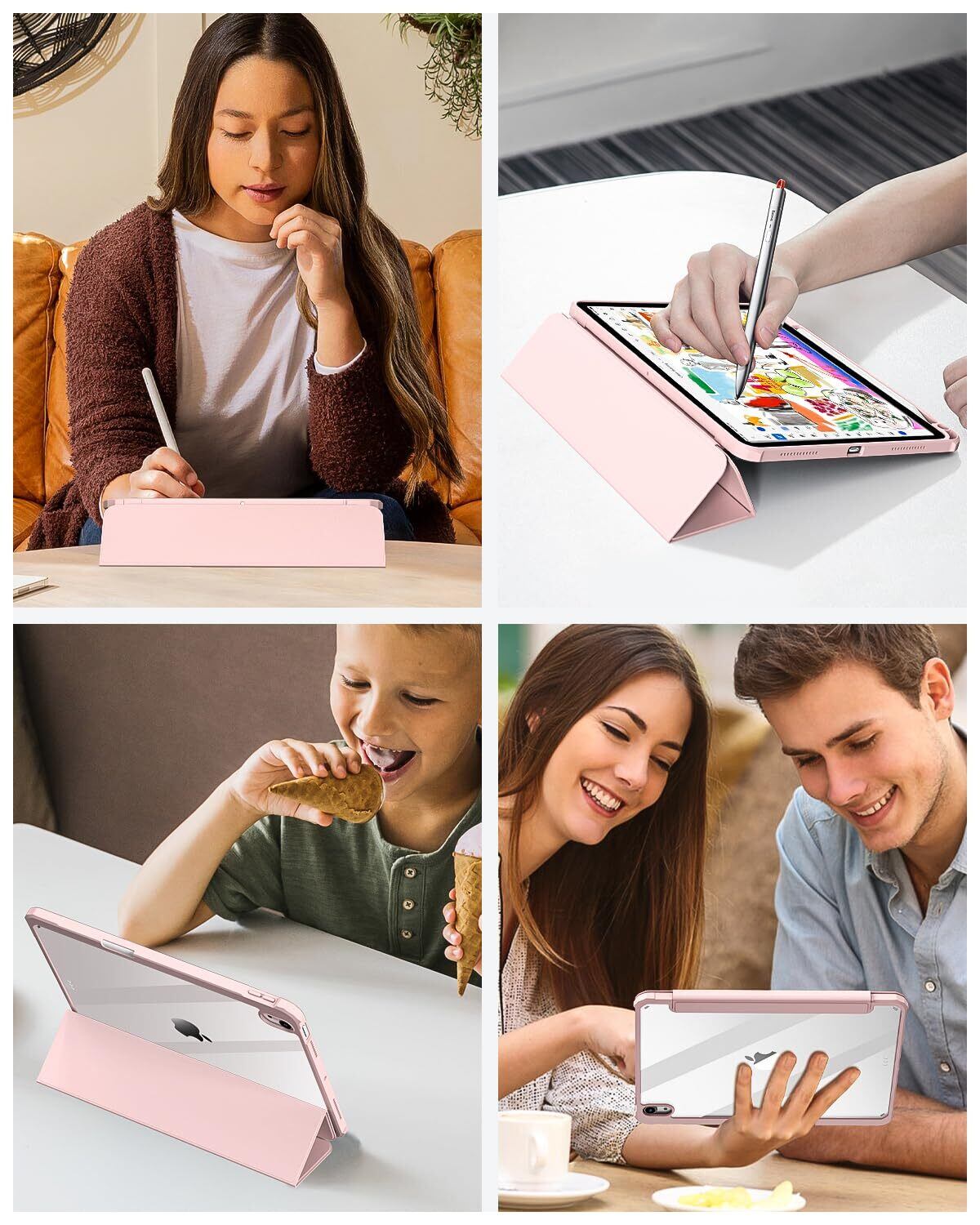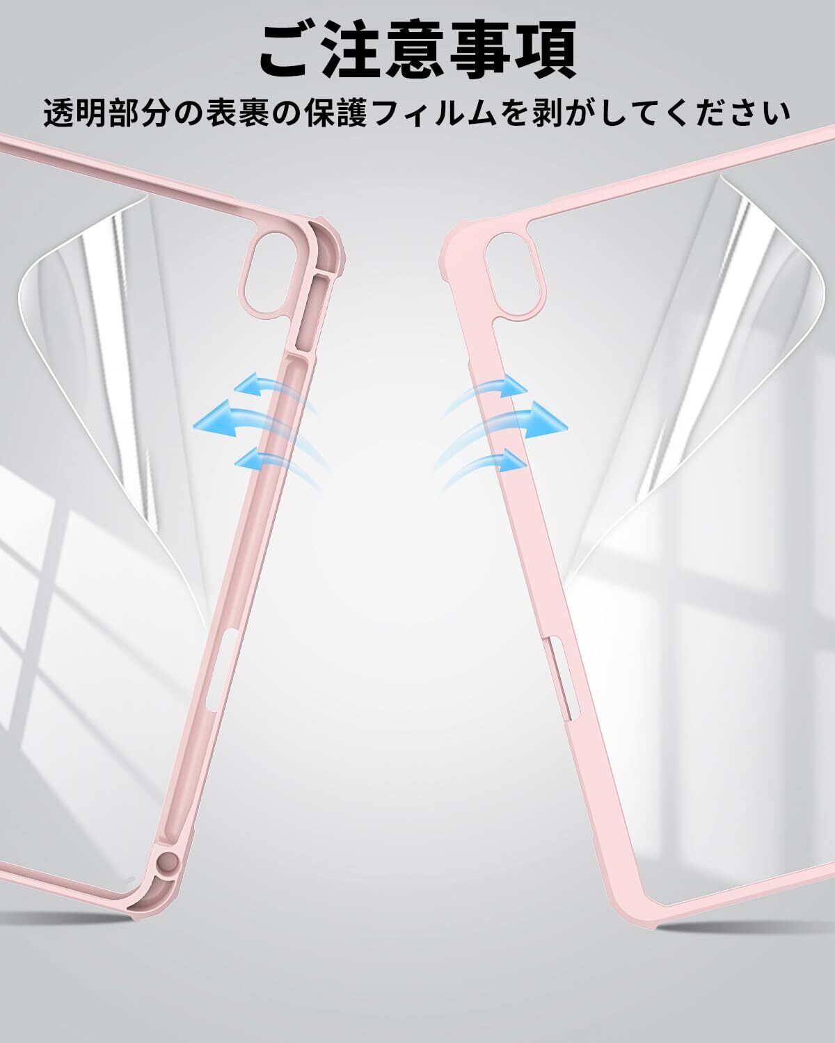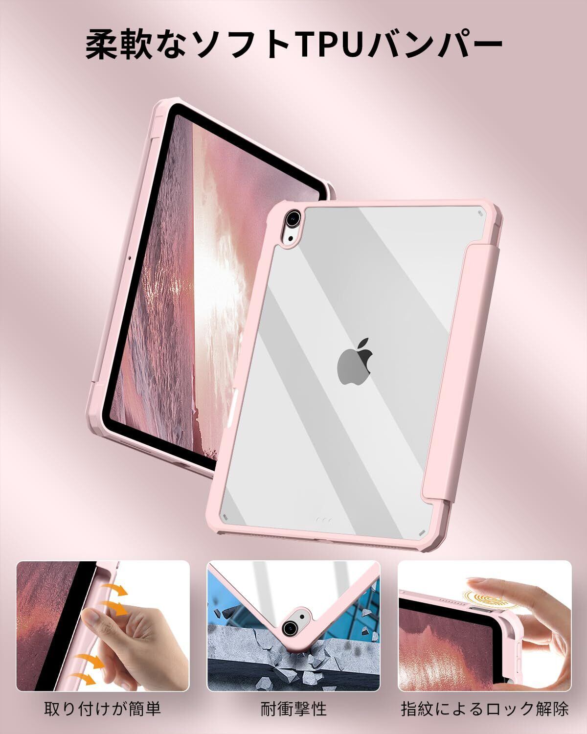 SQBEBS iPad 11世代 ケース A16 (2025) iPad 第11/10世代 10.9インチ (2022) 透明バックカバー ペンシルホルダー付き 三つ折りスタンド Touch IDとオートスリープ機能対応 軽量 薄型 傷つけ防止 PU合成レザー TPU ピンク
