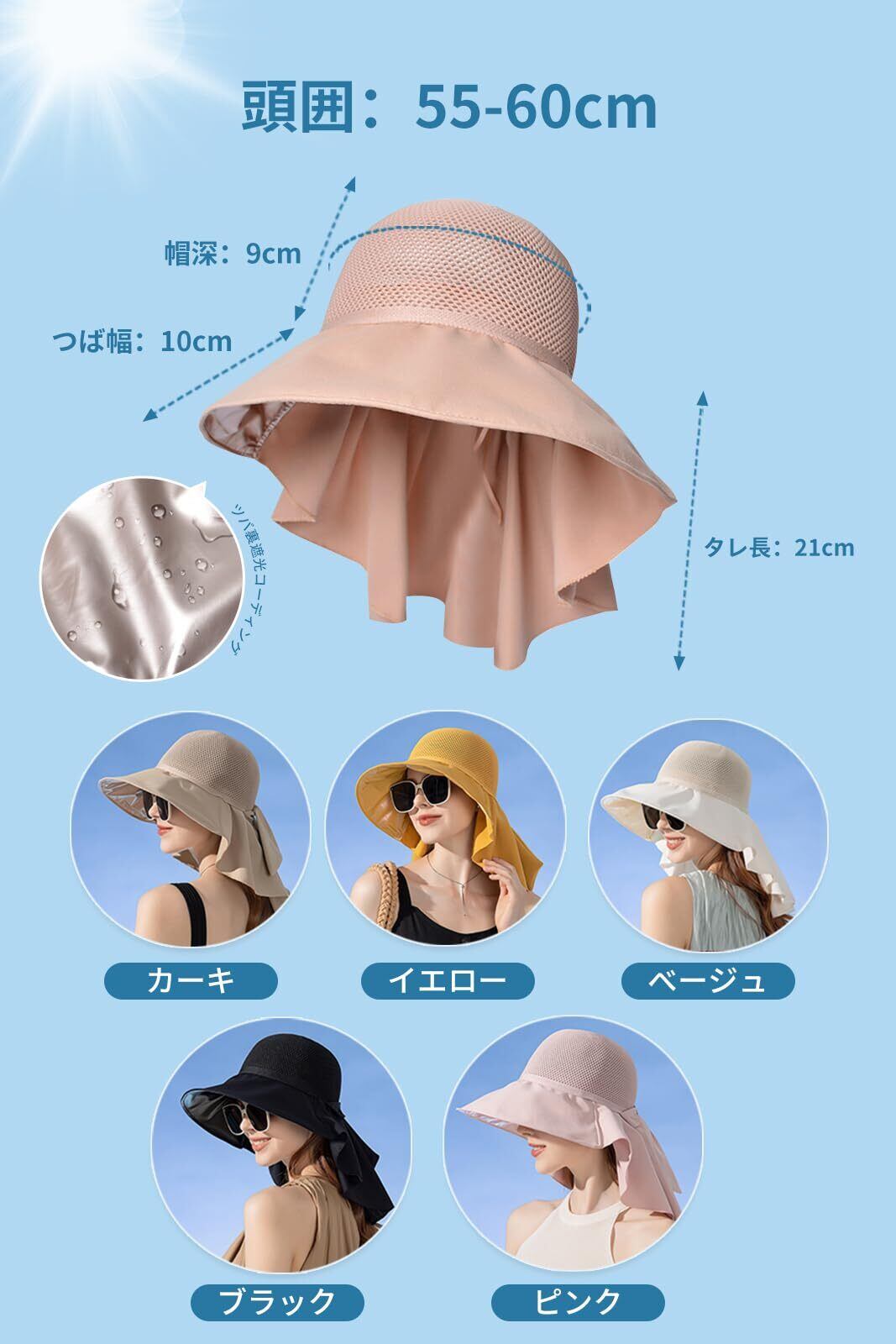 【フリーサイズ】頭囲範囲55-60cm、帽深9cm、ツバ10cm、ネックカバー21cm