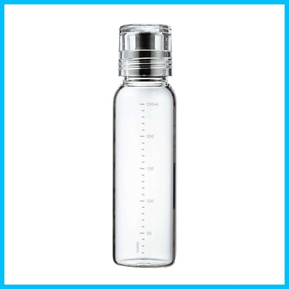 【商品詳細】本体サイズ:幅5.5×奥行5.5×高さ20.3・口径3.7cm、本体重量:約237g、実用容量:250mL、本体材質:本体/耐熱ガラス・フタ/PCT樹脂・注ぎ口/シリコーンゴム