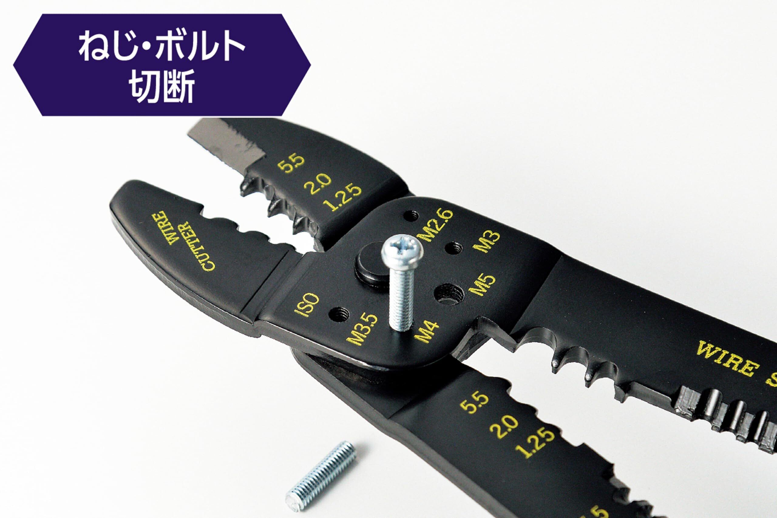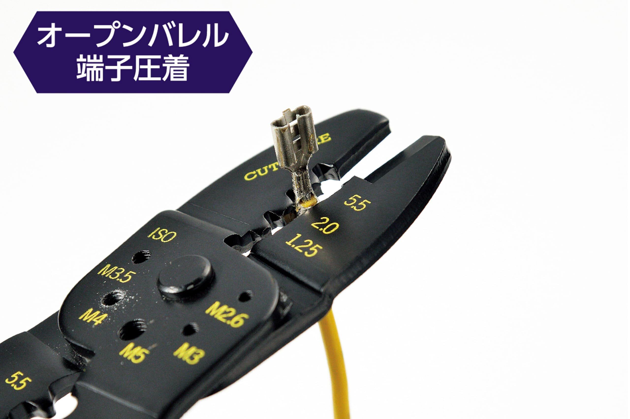 オープンバレル端子の圧着に。ねじ・ボルトの切断に