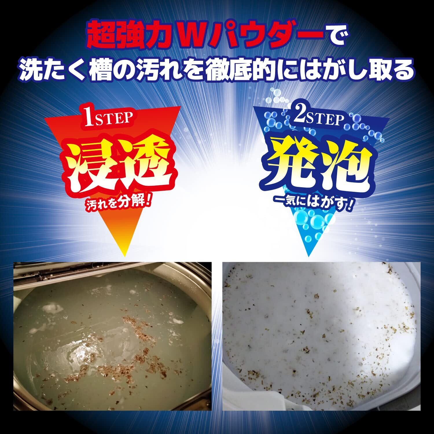 酸素系粉末タイプの2剤仕様。強力浸透、強力発泡パワーで汚れを除去する洗濯槽洗剤