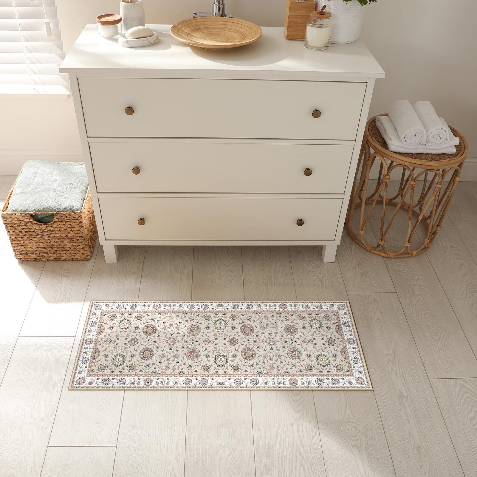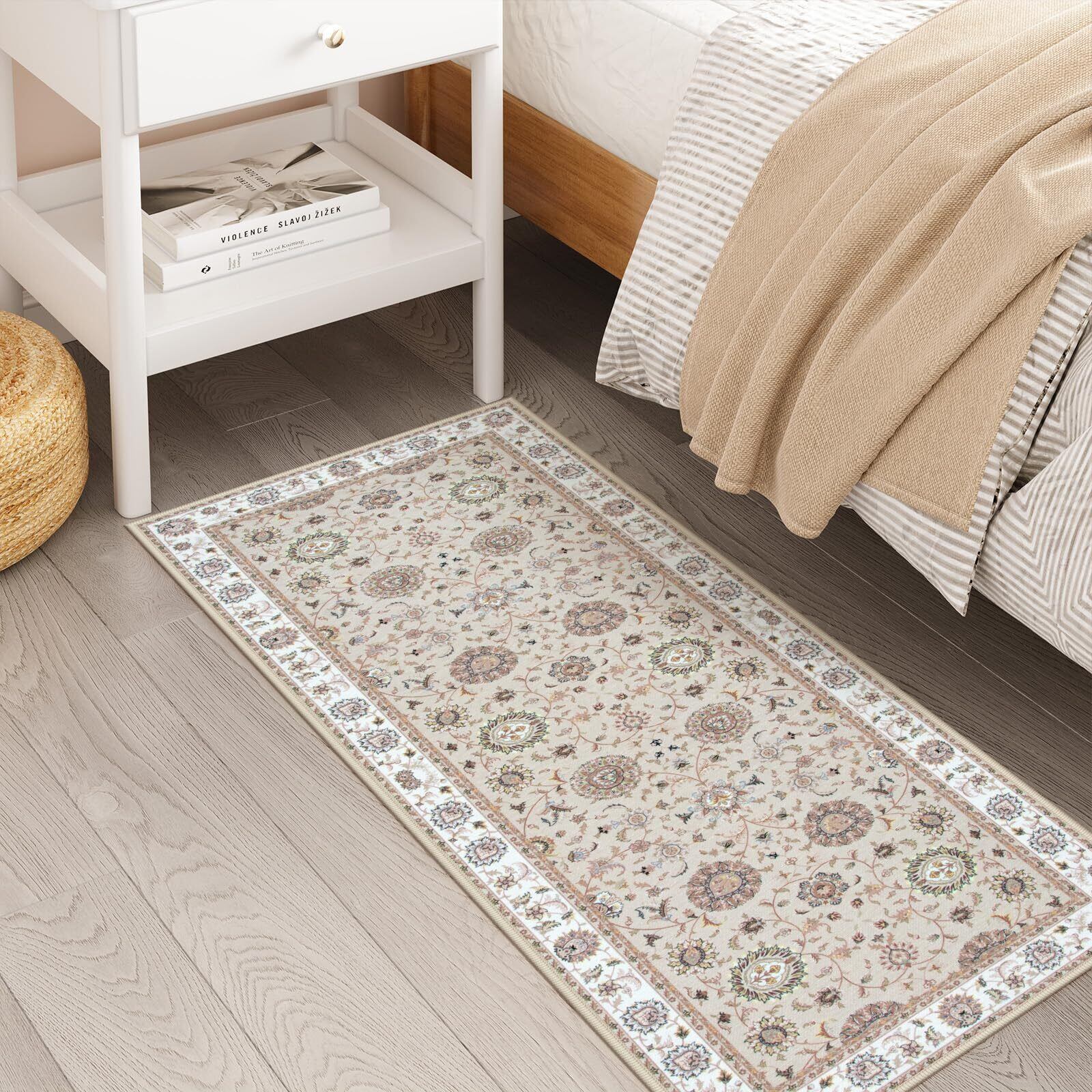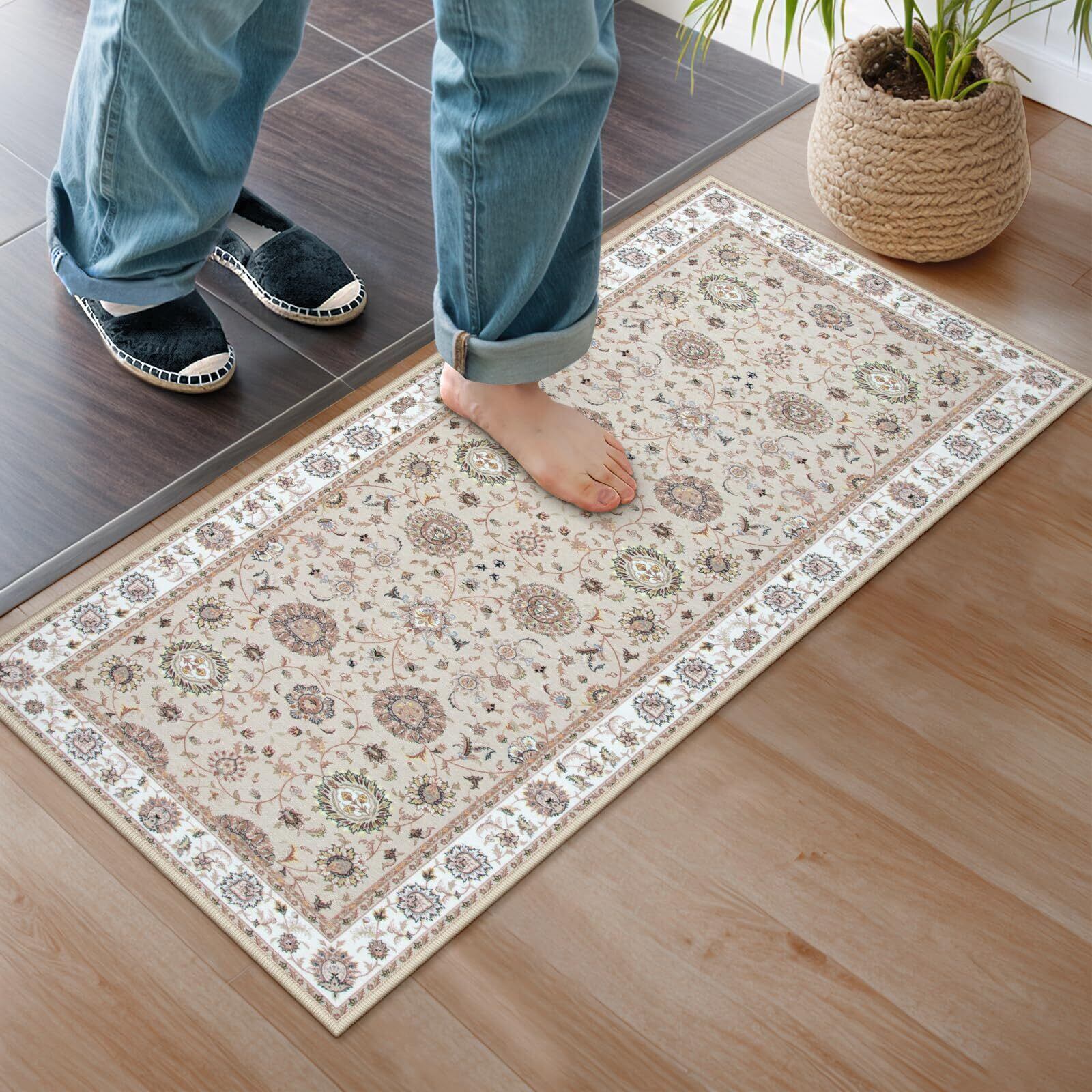 HAOCOO 玄関マット 室内 ペルシャ絨毯風 キッチンマット 洗える 滑り止め 45х120cm ラグマット 廊下敷き オールシーズン 耐磨耗性 防音 室外 シェニール適用 抗菌防臭 軽量 ベージュ