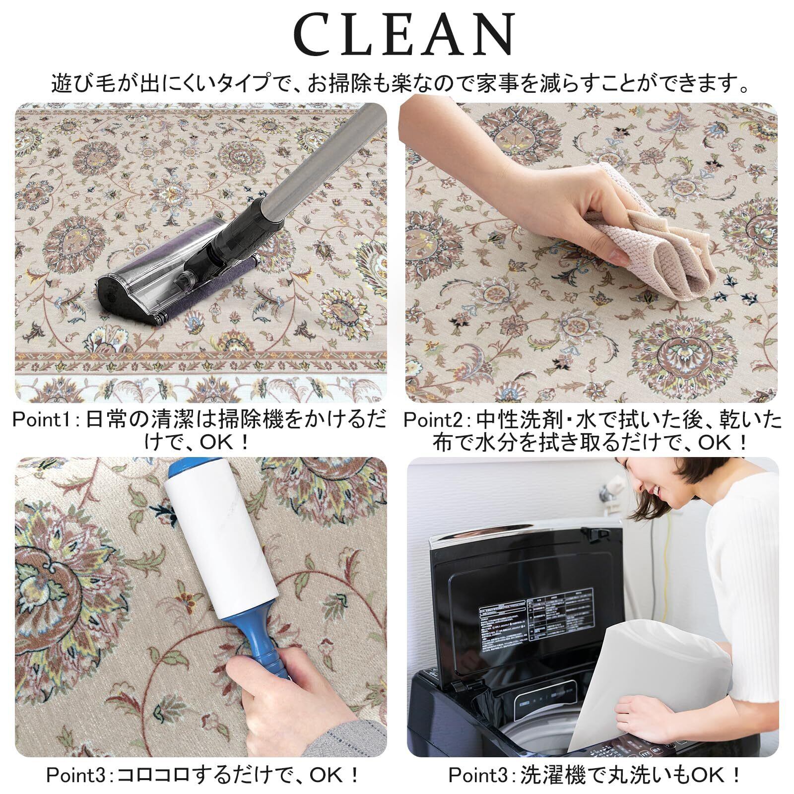 【お手入れ便利】毛足がないので、ゴミが絡みにくく、日常の清潔は粘着クリーナーをコロコロするや掃除機をか けるだけでキレイになります。また、汚れた場合は手洗いや洗濯ネットに入れて洗濯機で洗うことができます(ご 注意:風通しの良いところで陰干しし、アイロン、乾燥機の使用をお避け下さい。)