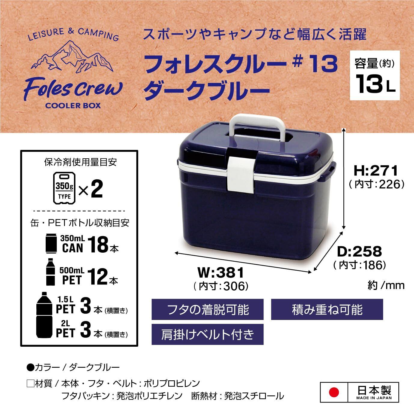 JEJアステージ フタが外せてお手入れ簡単 クーラーボックス フォレスクルー ダークブルー 13L 日本製[幅381x奥行258x高さ271㎜]500ml ペットボトルを立てて収納できる 保冷 軽量 ランチボックス 部活 アウトドア お出かけ レジャー スポーツ 350缶18本 ショルダーベルト付き