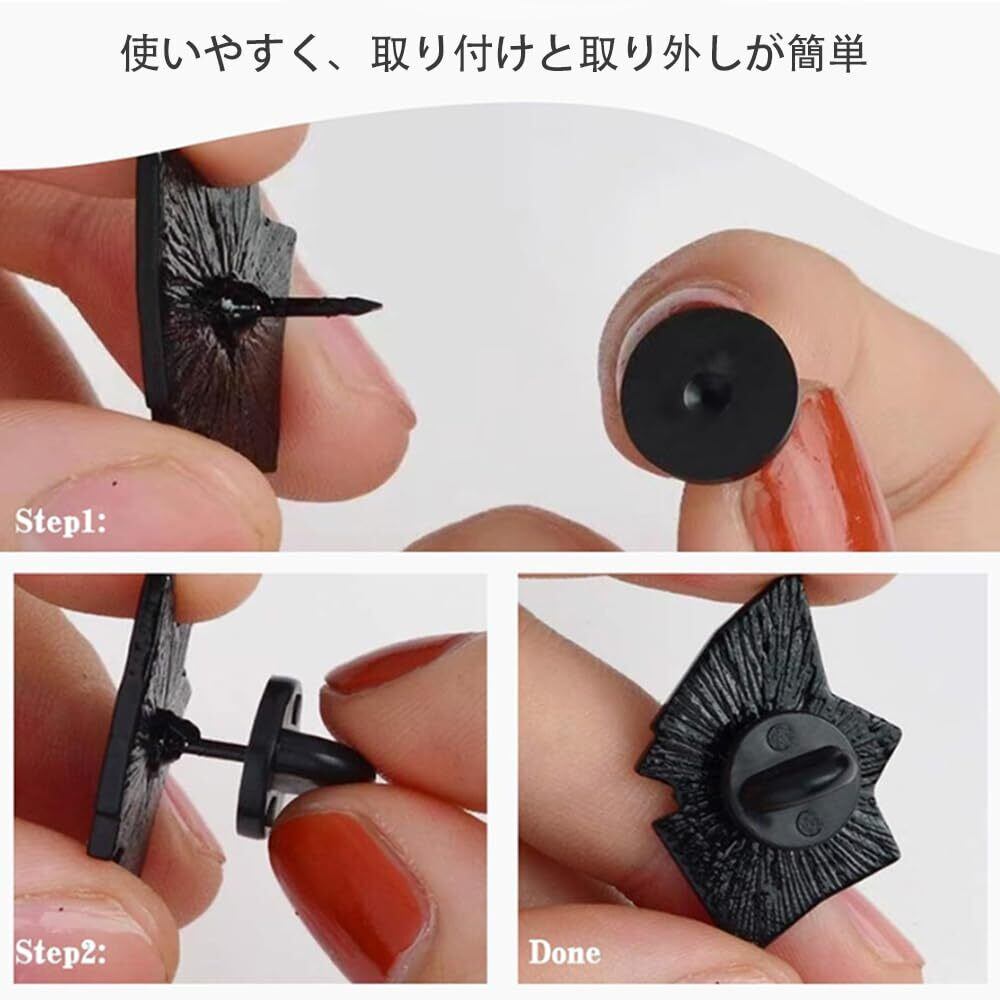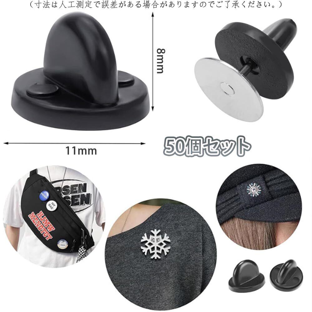 セット内容:バッジ留め具50個セット、サイズ:約8mm×11mm。カラー:ブラック。(寸法は人工測定で誤差がある場合がありますのでご了承ください。)