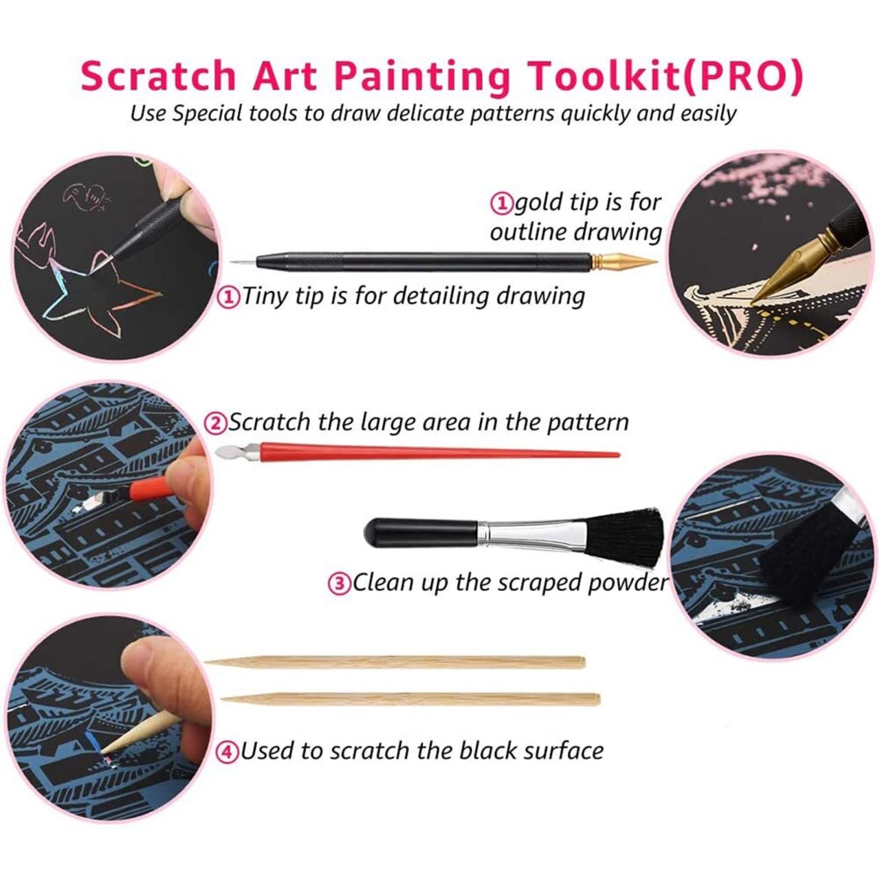 【セット内容】スクラッチペーパー×8枚、スクラッチペン×1本、竹ペン×2本、スクレーパーペン×1本、ブラシ×1本 これは大人と子供の両方への完璧な贈り物です。