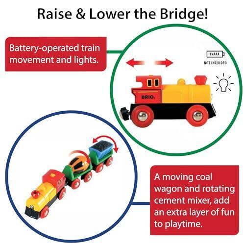 BRIO (ブリオ) WORLD バッテリーパワーアクショントレイン [全3ピース] 対象年齢 3歳~ (電車のおもちゃ 木のレール 電動 機関車) 33319