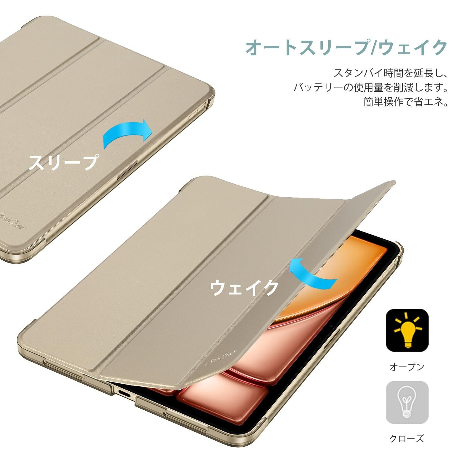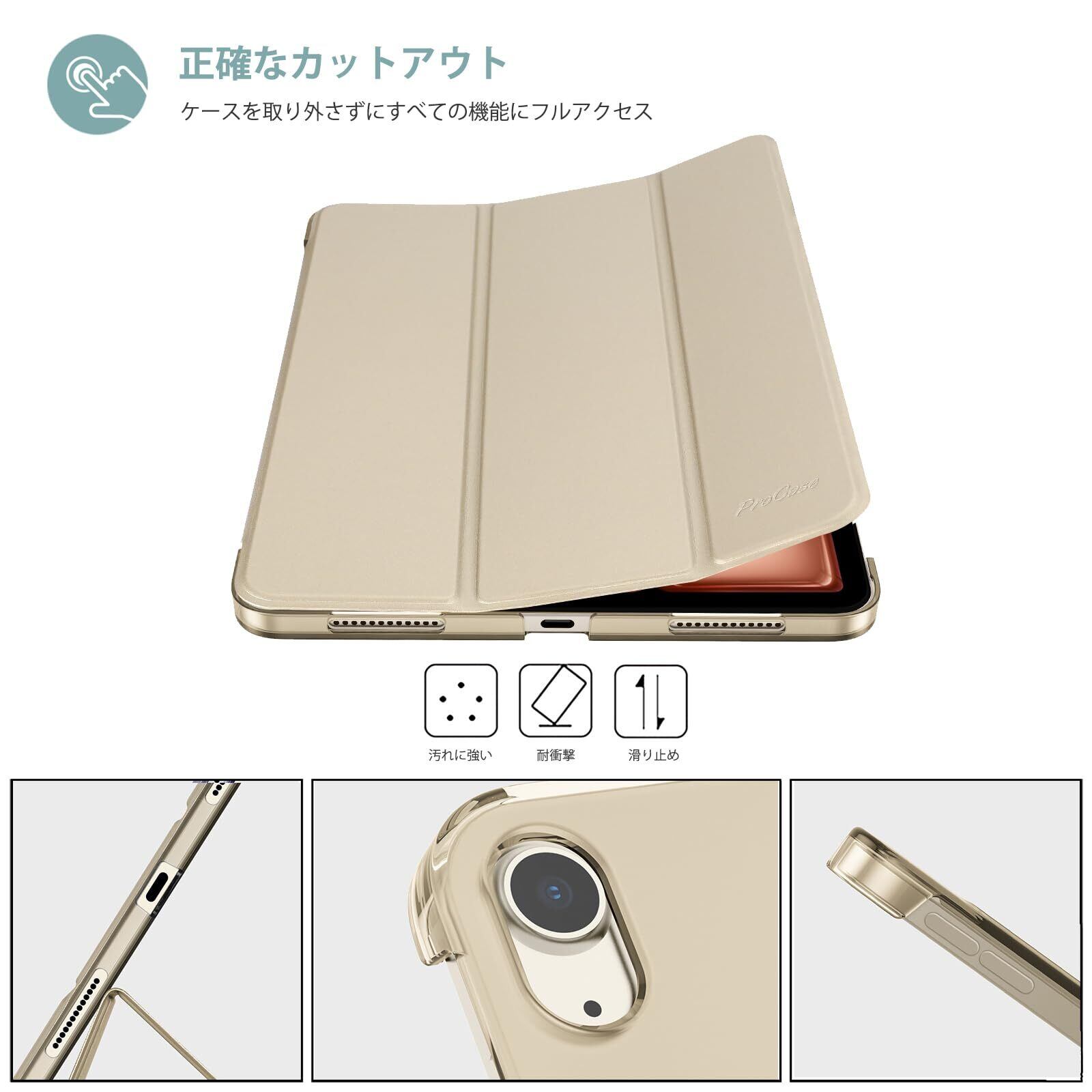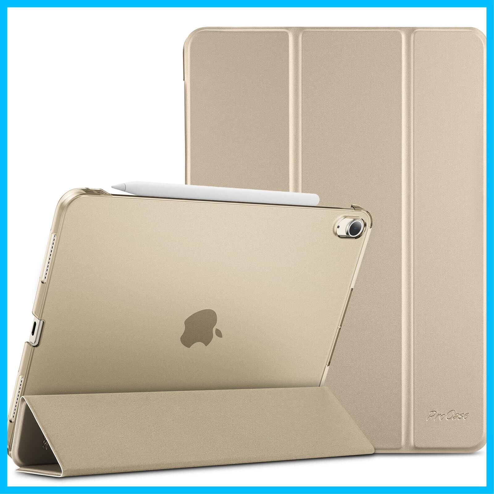ProCase iPad Air 11インチ ケース M3 (2025) / M2 (2024) / iPad Air 第5世代 / 第4世代 軽量 スタンド 三つ折り フォリオ保護ケース 半透明バックカバー Apple Pencil 2対応 対応端末:iPad air 11インチ M3 (2025)、M2 (2024)、iPad Air5 2022、Air4 2020 - スターライト