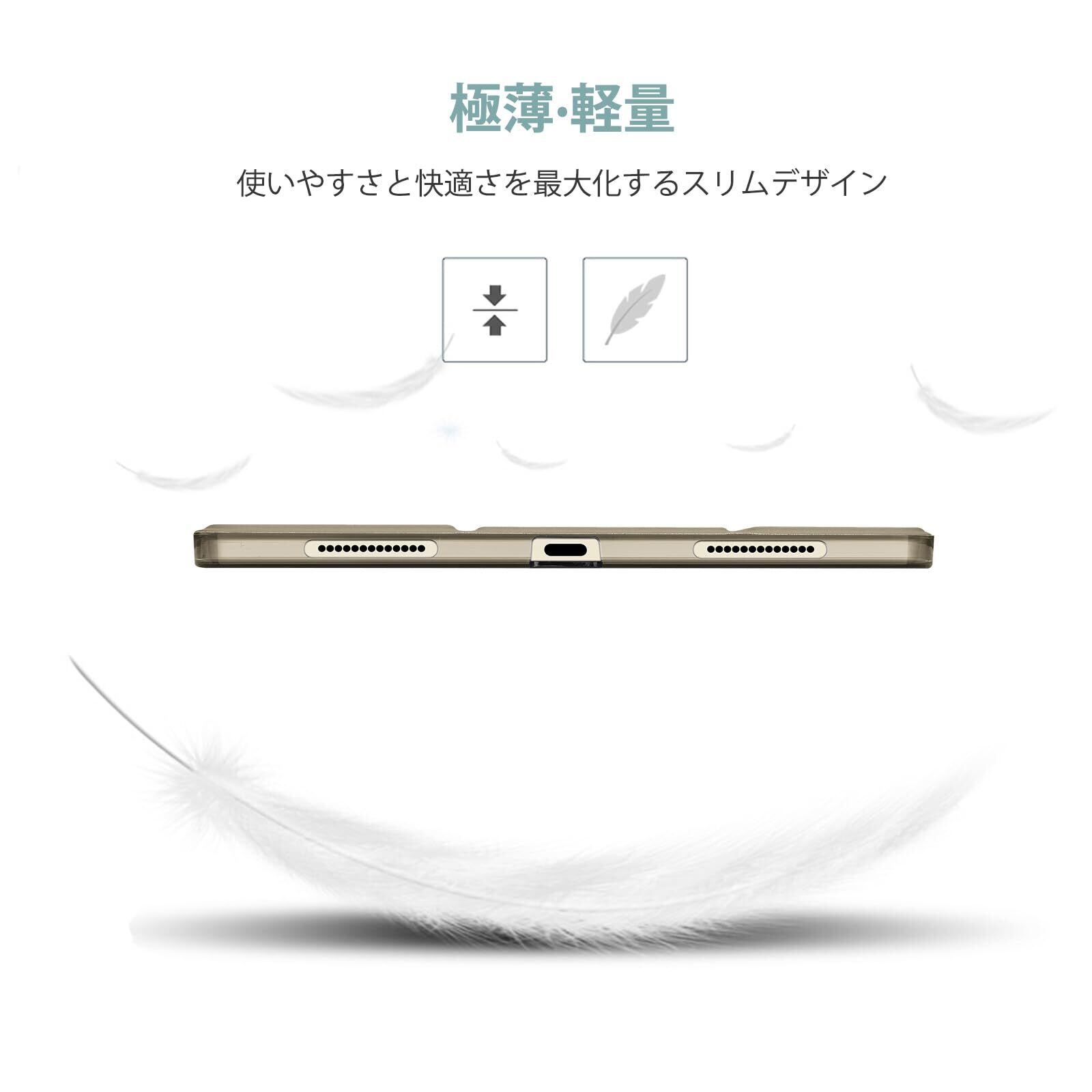 半透明のつや消し背面カバーは、耐衝撃で指紋や傷から保護しながら、iPad本来の美しさをそのまま活かせます。