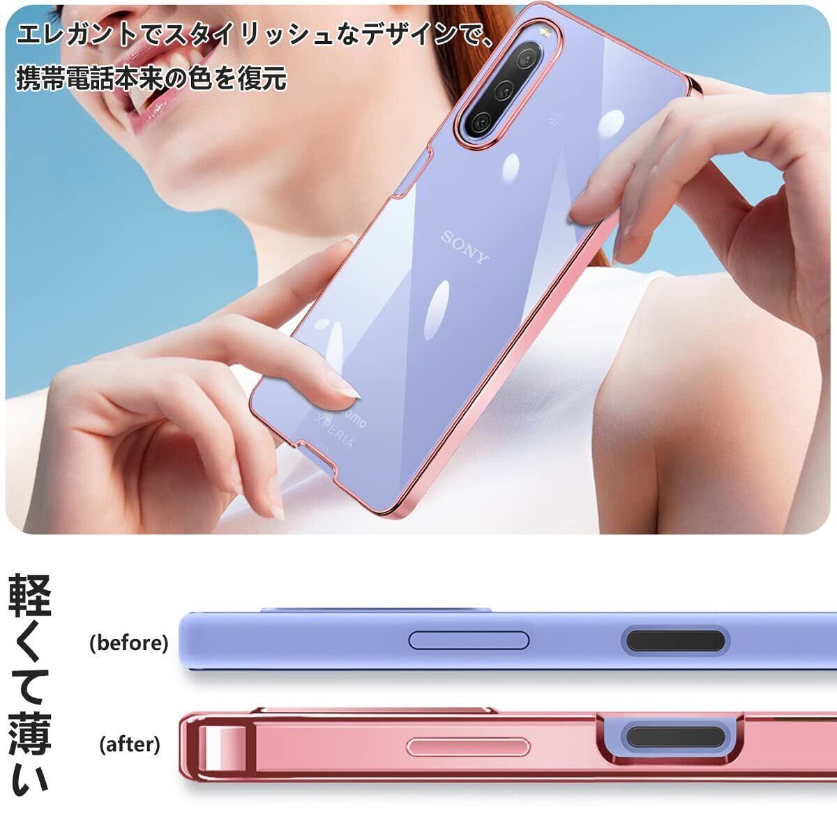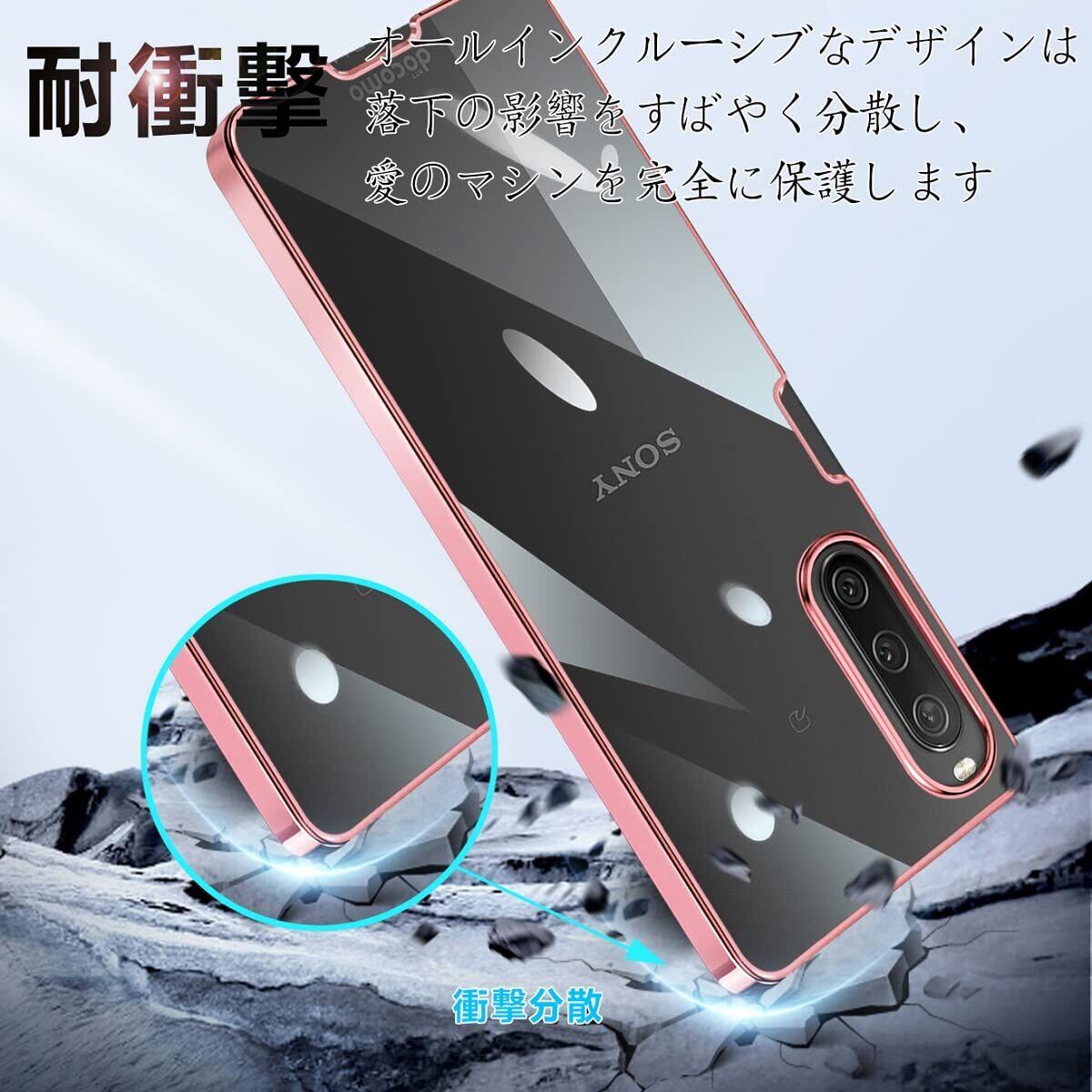 Xperia 10 IV ケース クリア SO-52C スマホケース SOG07 カバー 衝撃吸収 薄型 TPU 軽量 ストラップホール付き 全面の保護 (ローズゴールド)
