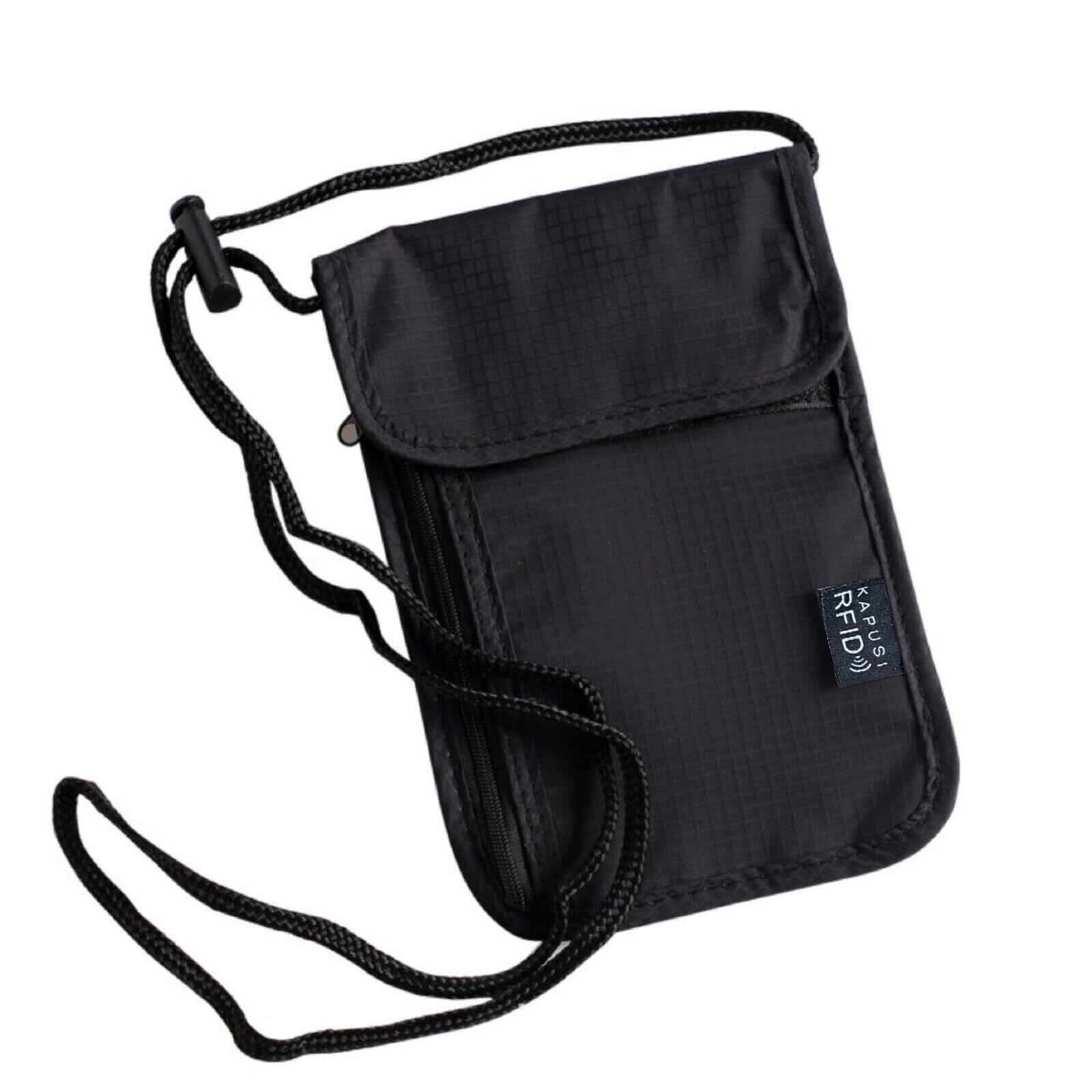 [kapusi] パスポートケース 首下げ RFID スキミング防止 パスポートバッグ ネックポーチ 航空券 紙幣 カード 小銭 ペン 鍵 スマホ 収納可 多機能 軽量 防水 海外旅行 便利 貴重品入れ 男女兼用 (Black)