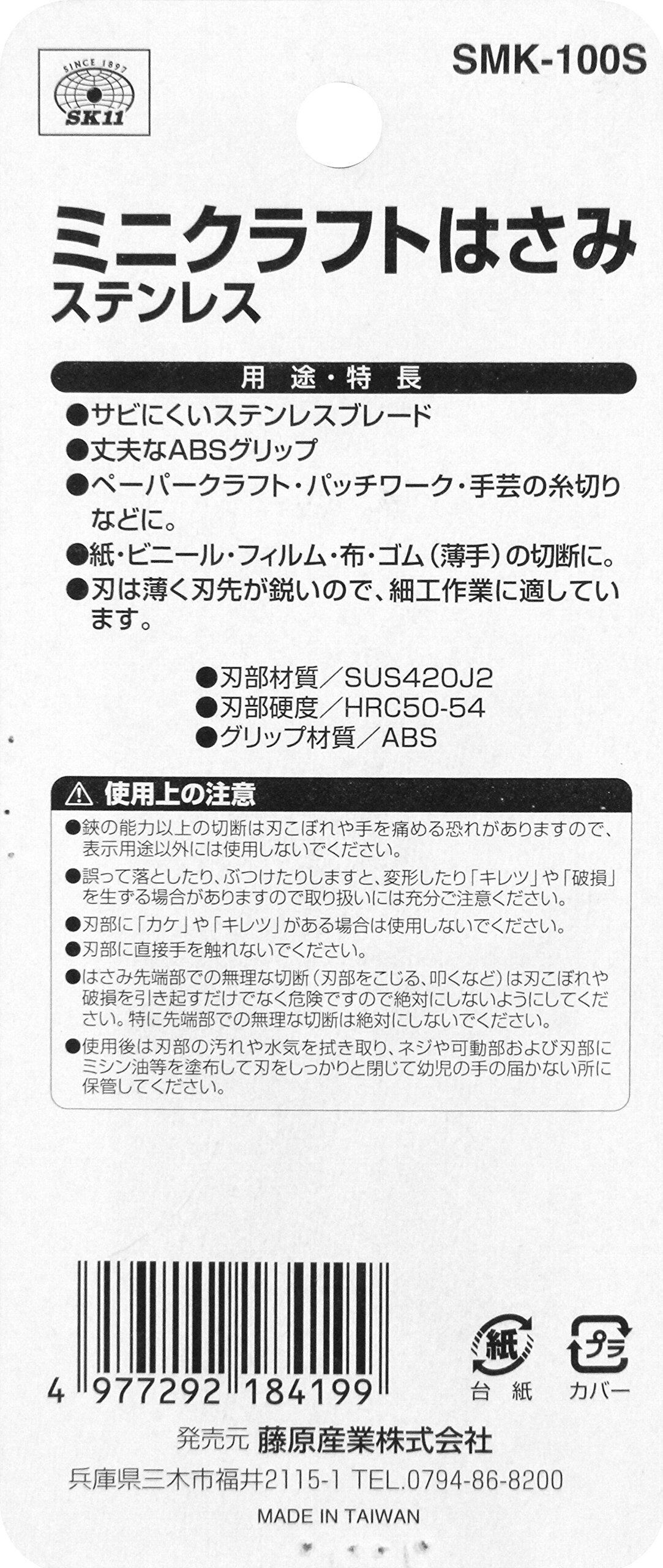 SK11(エスケー11) ミニクラフトはさみ ステンレス 100mm SMK-100S 手芸の糸切りなどに