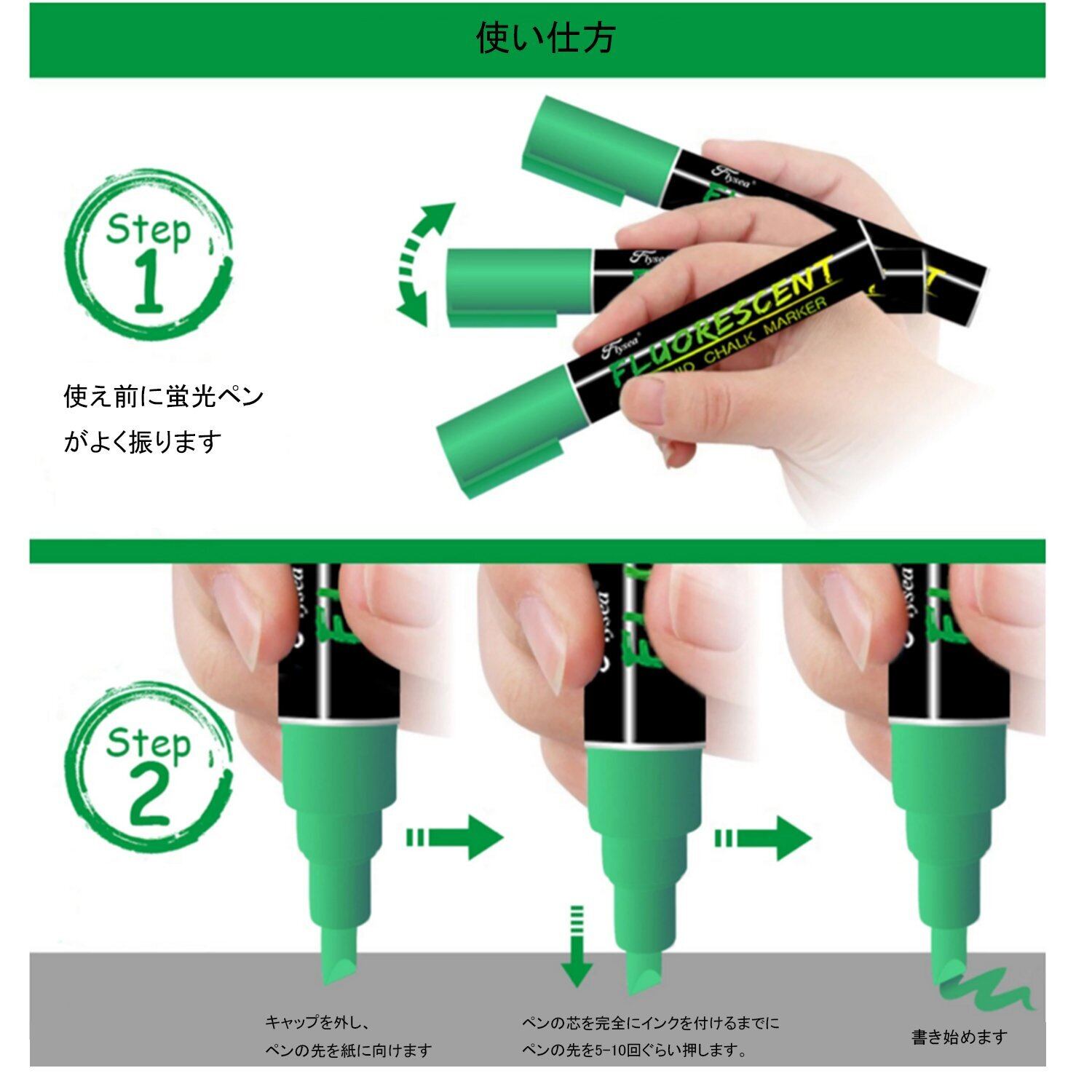 【使用環境】子供から大人まで広く使えて、学校、オフィス、お店、ご家庭、パーティーにも使われます。使う範囲が広くて、例え:掲示板、ガラス、LEDボード、陶磁、コップなど滑り表面に簡単に書けます、また書いた内容が乾かしても、少し水で、すぐ綺麗に消せます。