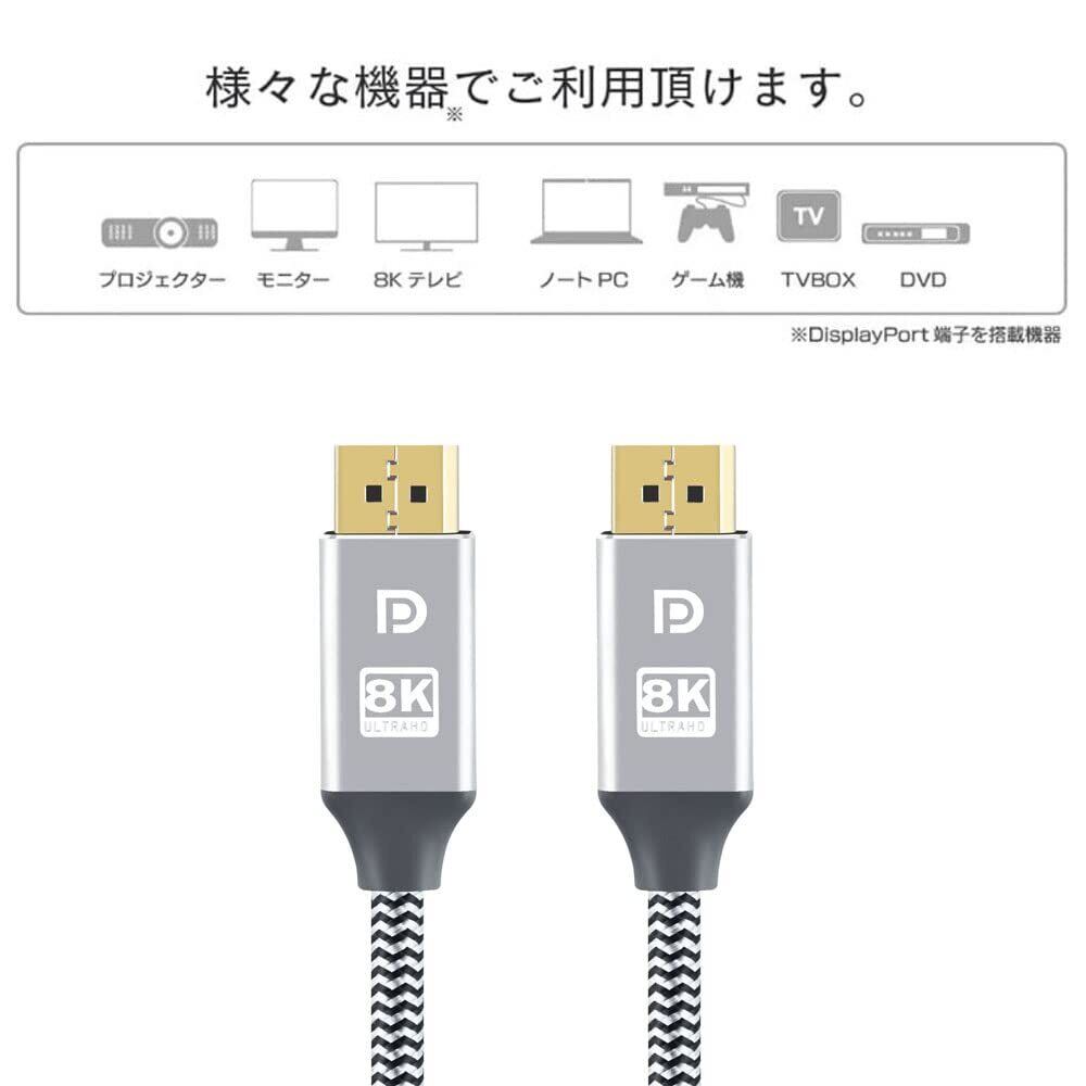 8K DisplayPort ケーブル 1M 1.4規格240Hz対応 ディスプレイポート ケーブル dpケーブル HDR対応 8K@60HZ/4K@144Hz/2K@240Hz 32.4Gbps ハイスピード DPケーブル ナイロン編み PC テレビ PS5 PS4 PS3 対応 (1M)