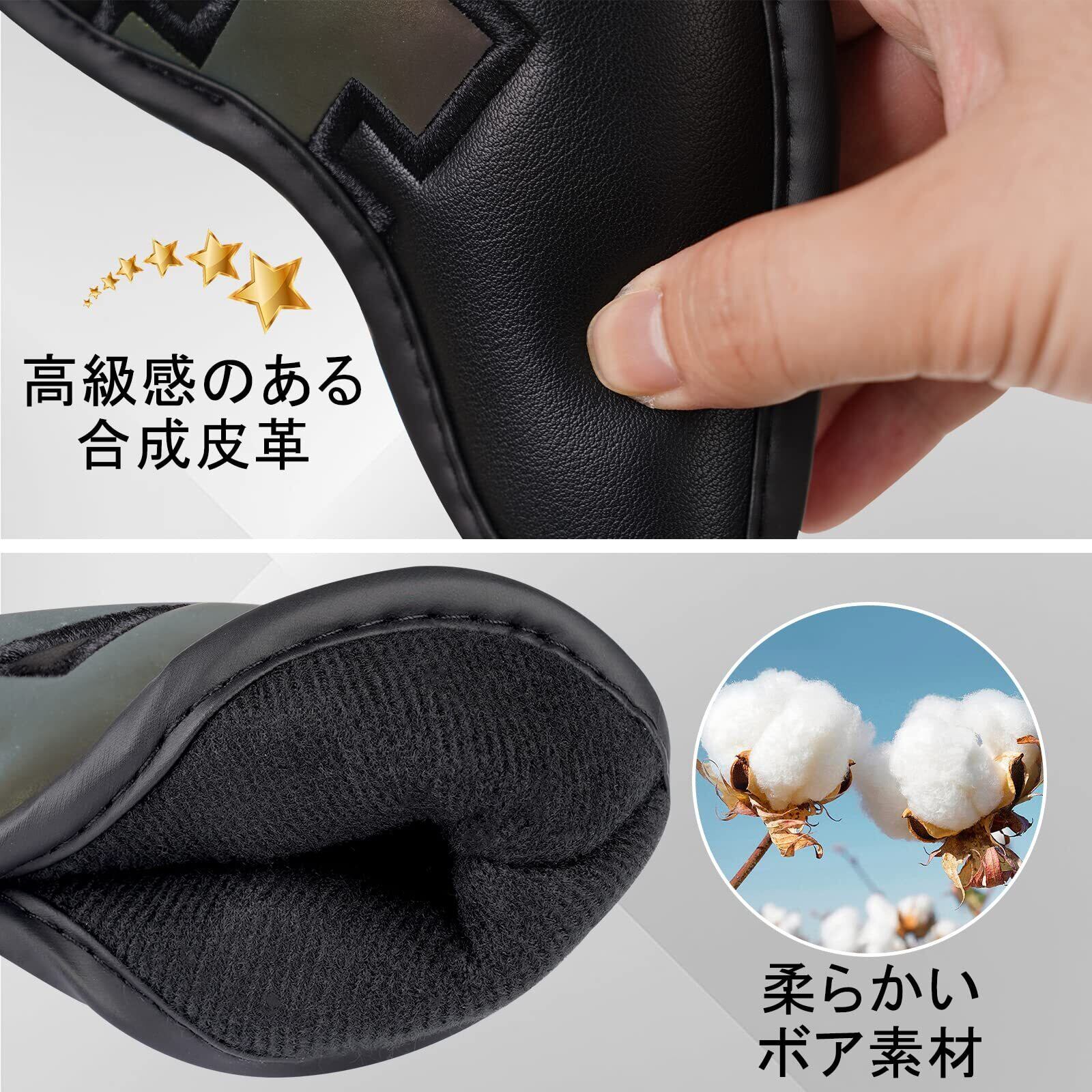 ゴルフアイアンカバー マグネット ウェッジカバー クラブヘッドカバー セット 10pcs(4-9,P,A,S,X) 両面グラデーション番号 黒い合成皮革