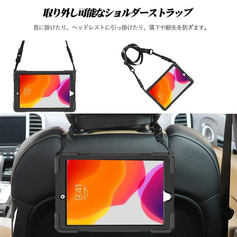 iPad 9世代 7世代 ケース iPad 8世代 ケース iPad 10.2 ケース 2021/2019/2020 SIBEITU 耐衝撃 衝撃吸収 スタンド ハンドストラップ 肩掛けー ショルダーストラップ 回転 頑丈 仕事用 防塵 傷つけ防止 ハード 子供 キッズ アイパッド 第七世代 10.2 カバー モデル A2200 A2198 A2197 ブラック