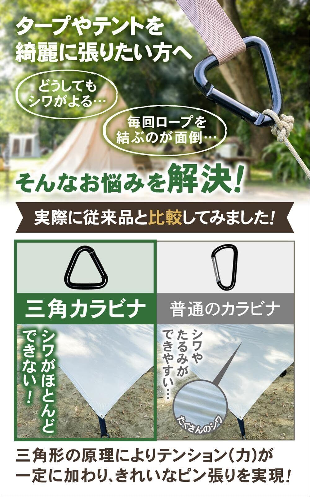 【国内耐久試験済】 GreenWalker 三角カラビナ タープ テント ロープ キャンプ アウトドア(6個セット)