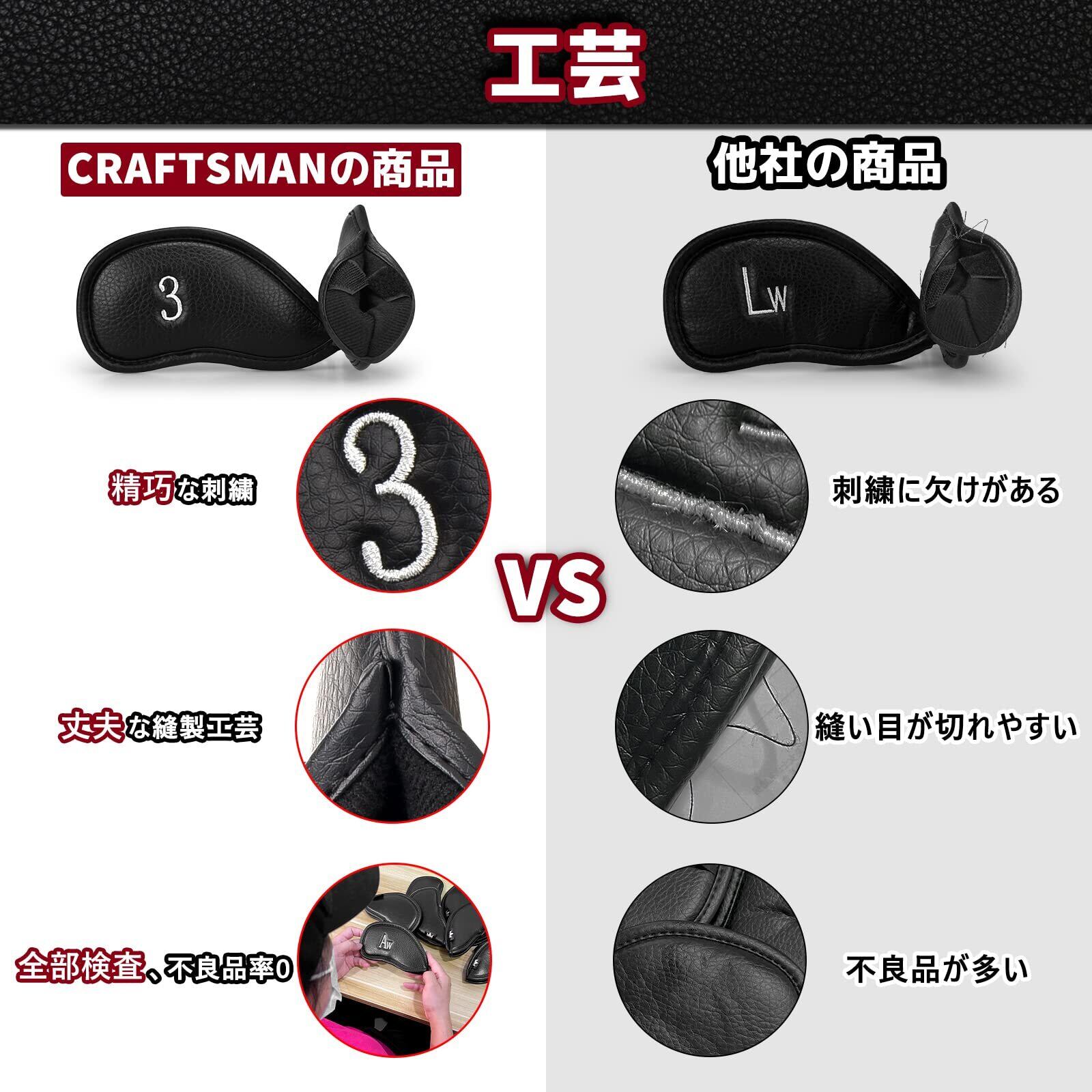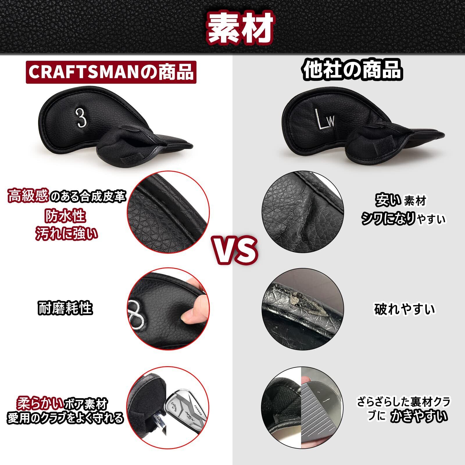 CRAFTSMAN(クラフトマン) ゴルフアイアンカバー マジックテープ開閉 ヘッドカバー セット 12枚入り(3-9、Aw、Pw、Sw、Lw、Lw)番号刺繍 ウェッジカバー 合成レザー
