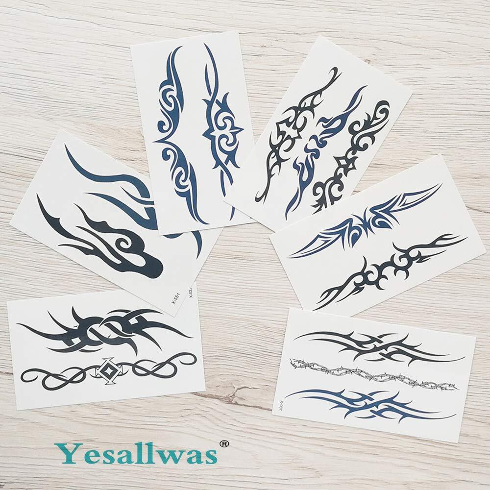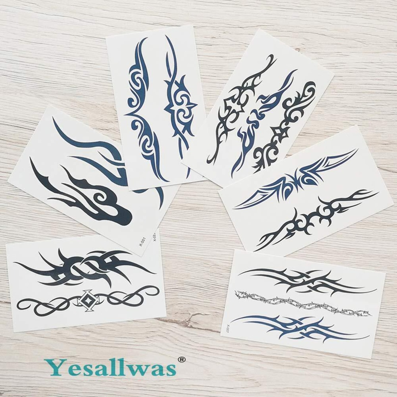 Yesallwas タトゥーシール トライバル 黒 青 鎖 有刺鉄線 腕輪 6枚セット タトゥーステッカー ボディーシール メンズ レディース 刺青シール 防水 Tribal tattoo sicker (トライバル)