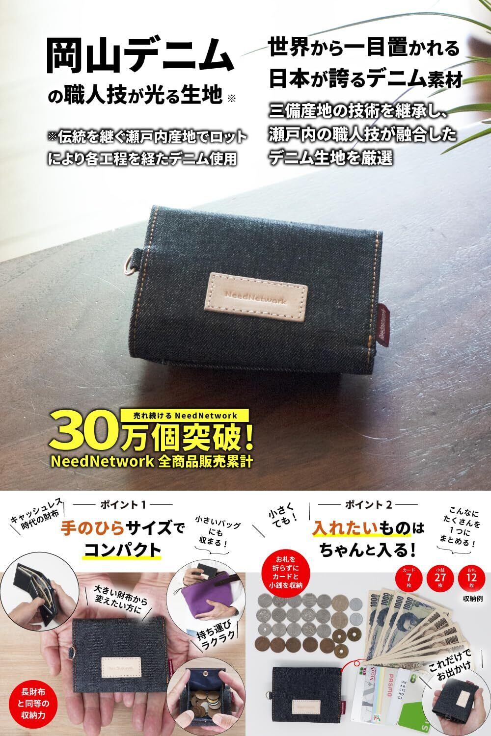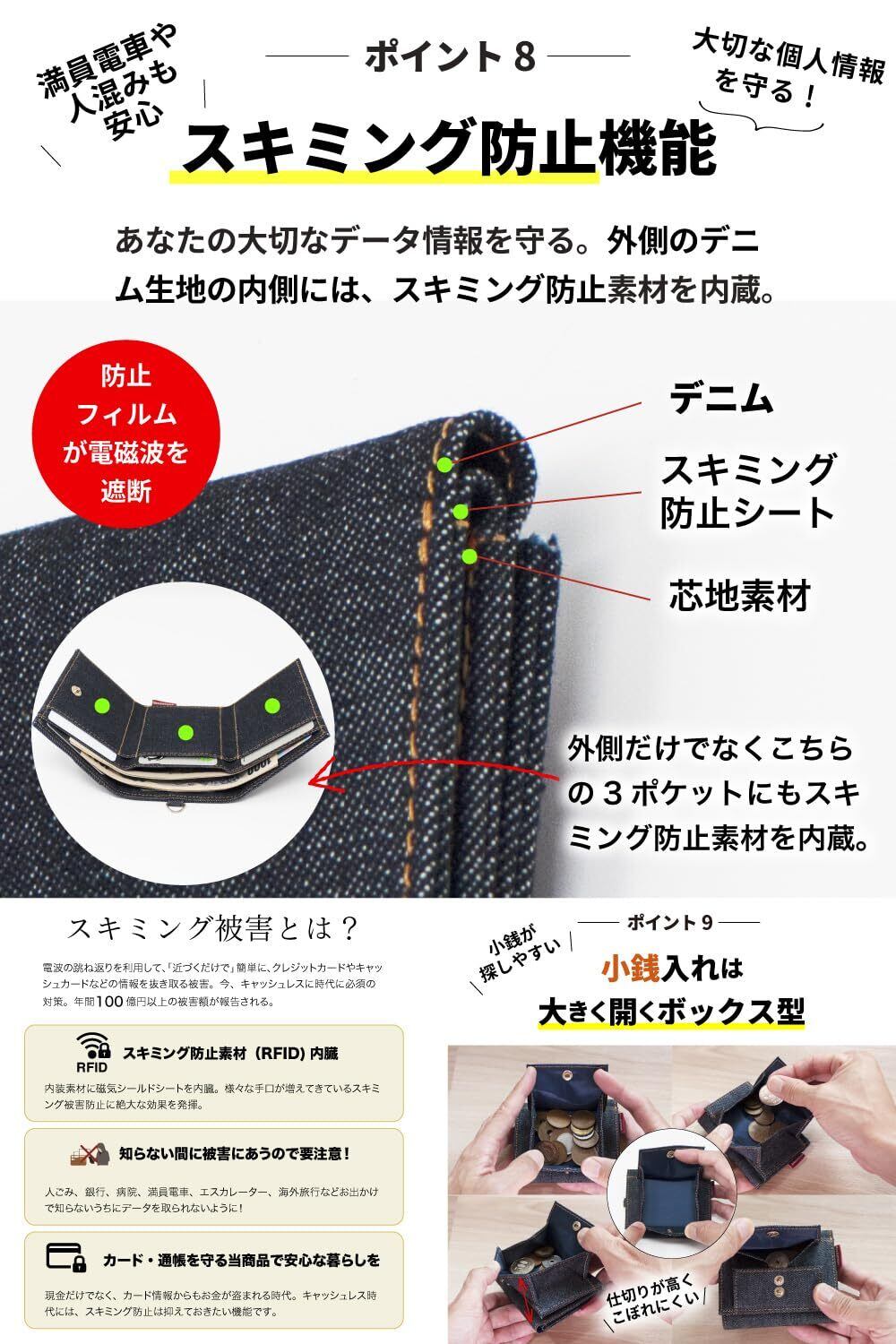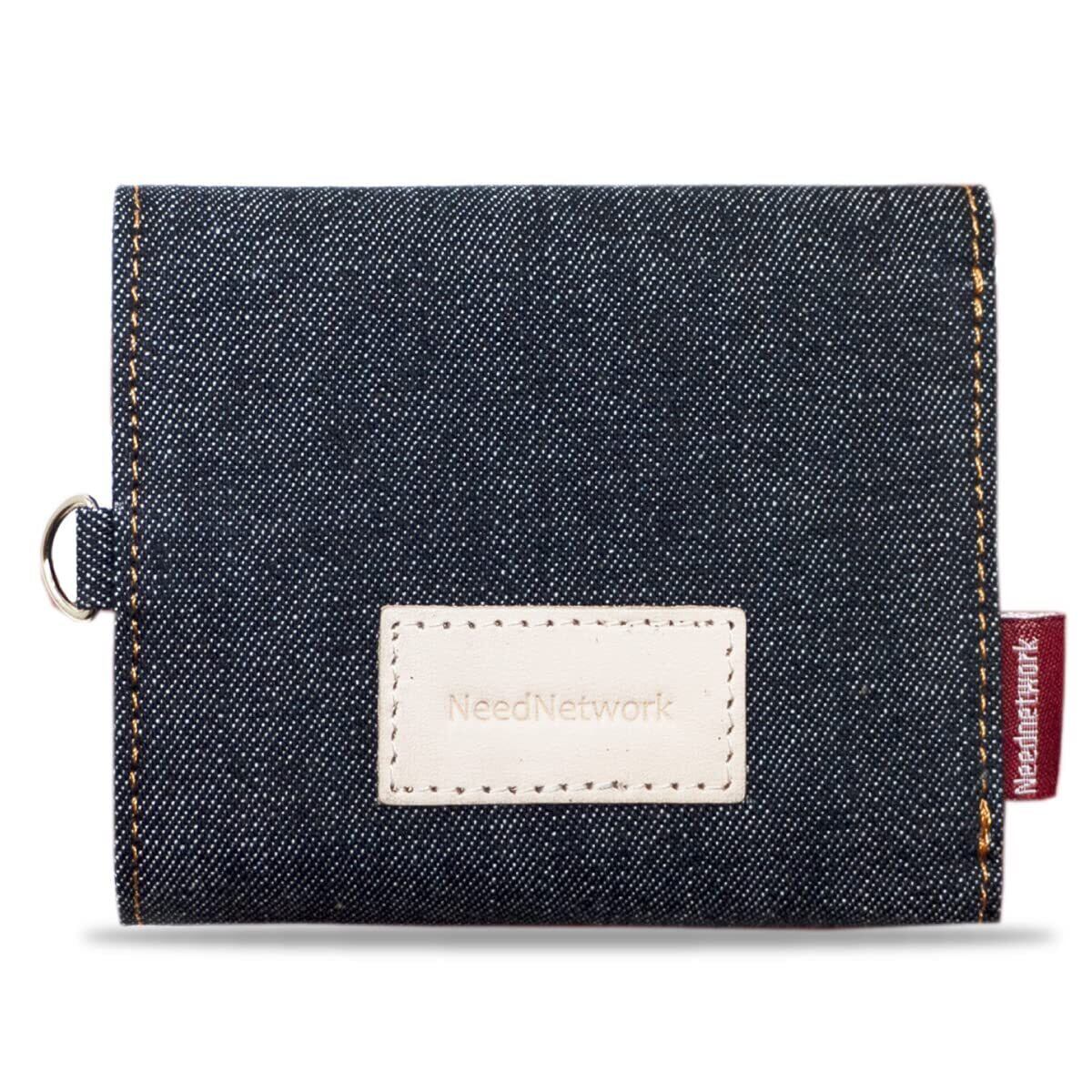[ニードネットワーク] 岡山デニム ミニ財布 三つ折り財布 小銭入れ ボックス型 財布 レディース ミニウォレット 小さい財布 スキミング防止 コンパクト コインケース