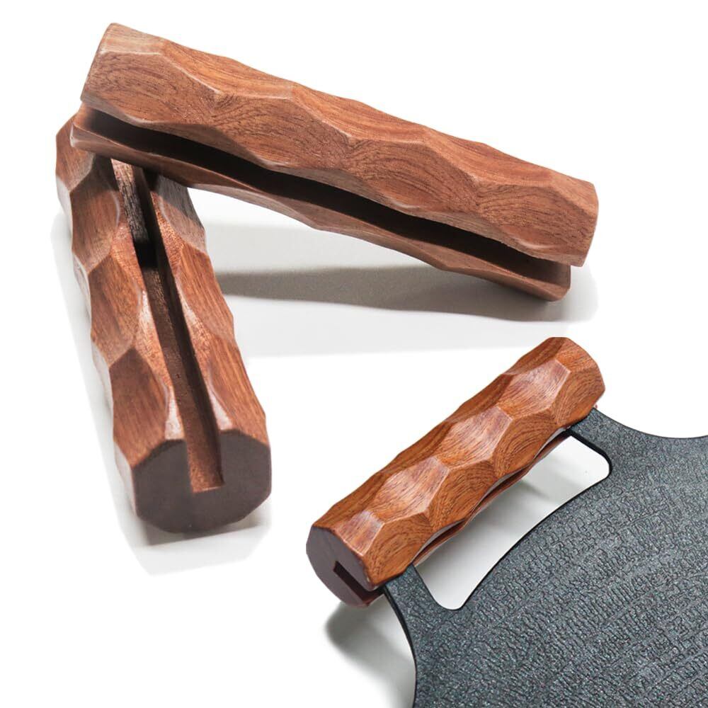 CMPCTR 【最新改良型】 鉄板マルチグリドル 取っ手カバー 33cm ウッドカバー 天然オイルコーティング 鉄板取っ手 自宅 キャンプ アウトドア 厚さ4mmまでのマルチグリドルに対応可能 木製 おしゃれ 取付簡単 火傷防止 2pcs