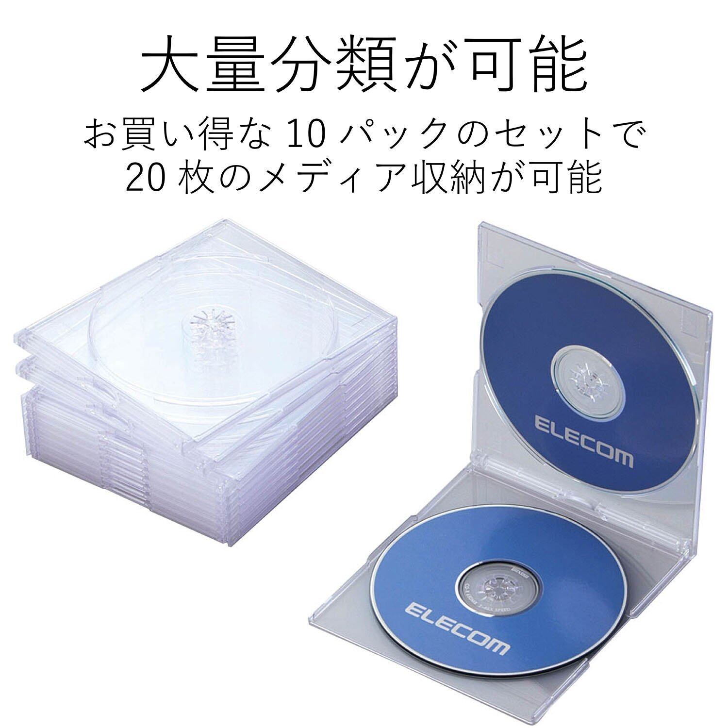 エレコム CD/DVDスリムプラケース/2枚収納/10パック/クリア