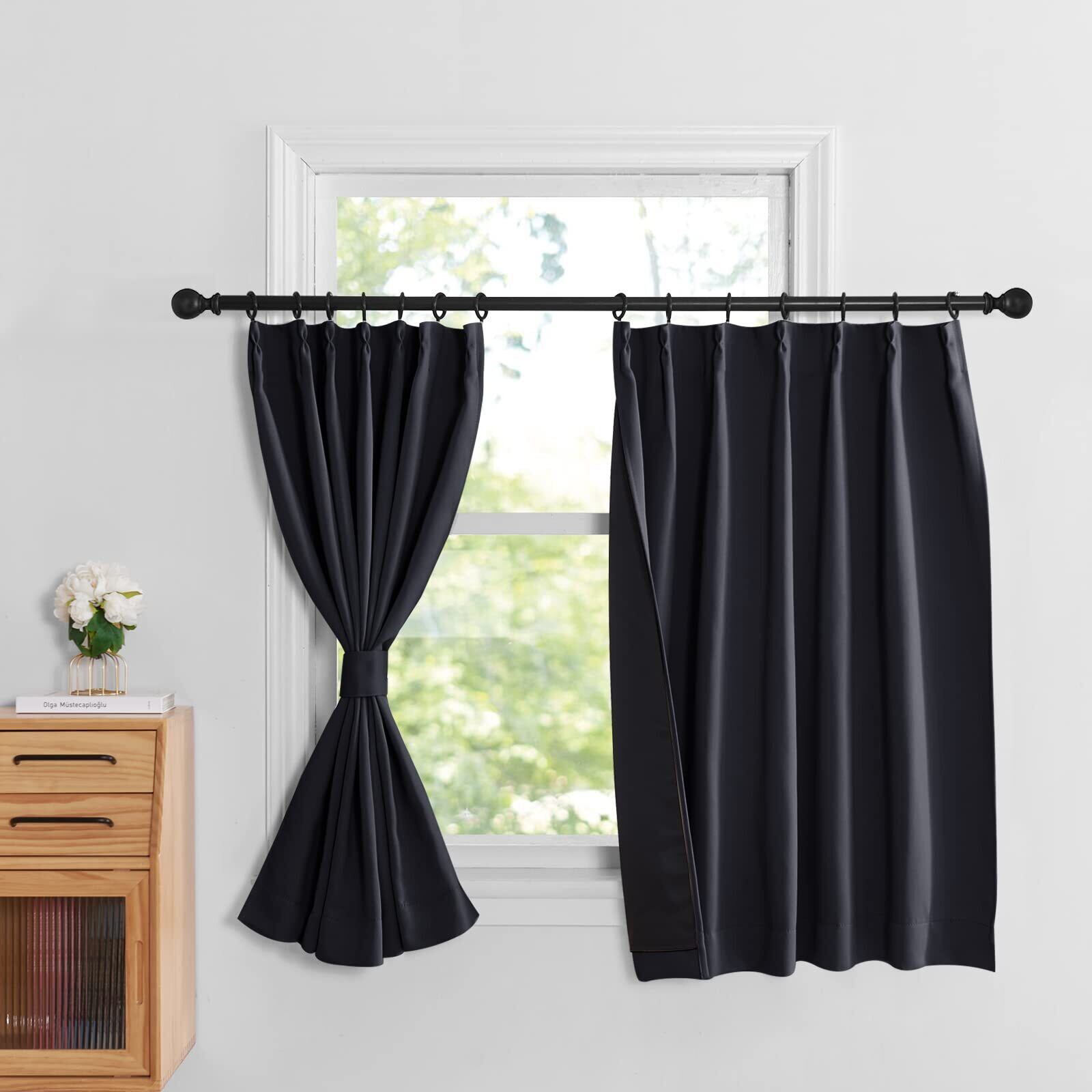 NICETOWN 完全遮光 100%遮光 二重カーテン 厚手 暗幕 裏地付き 防音 幅100cm丈135cm 黒 2枚セット 防寒 省エネ 仕切り 寝室 北欧 おしゃれ 可愛い 部屋 学校 小窓 腰窓 出窓 ホテル ベッドルーム