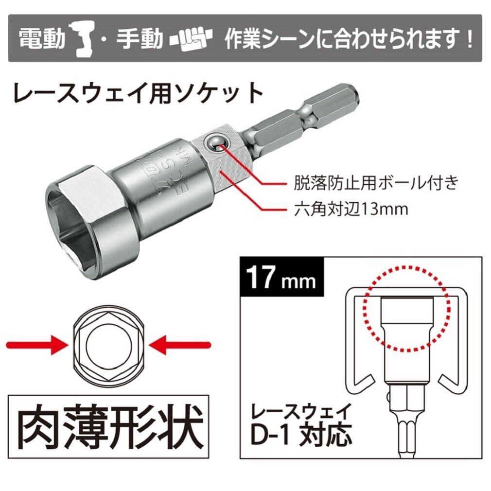 トップ工業 (TOP) 電動ドリル用 レースウェイソケット 対辺17mm 電動手動兼用 13mmレンチ使用可能 ECS-17 燕三条 日本製