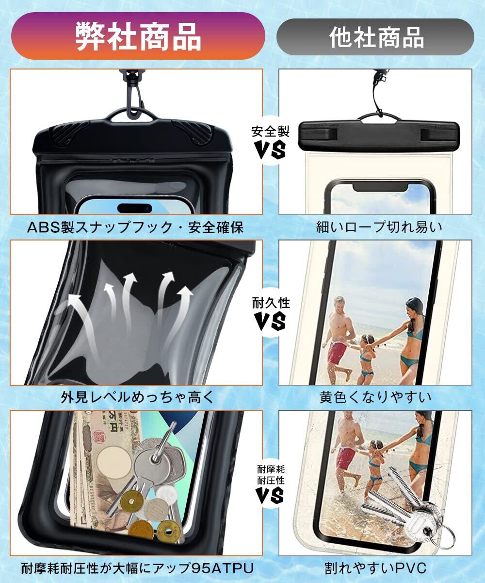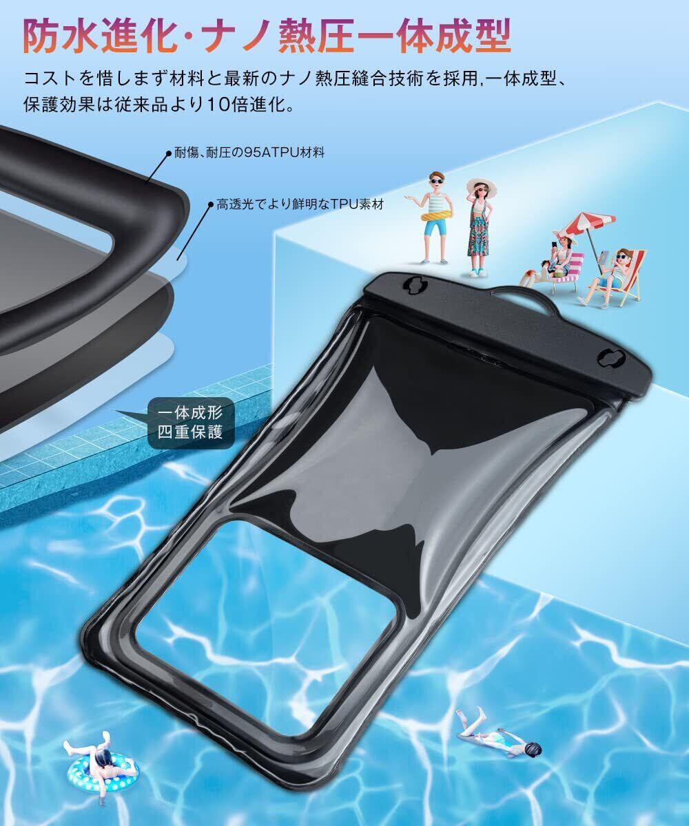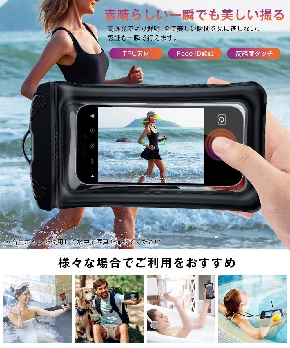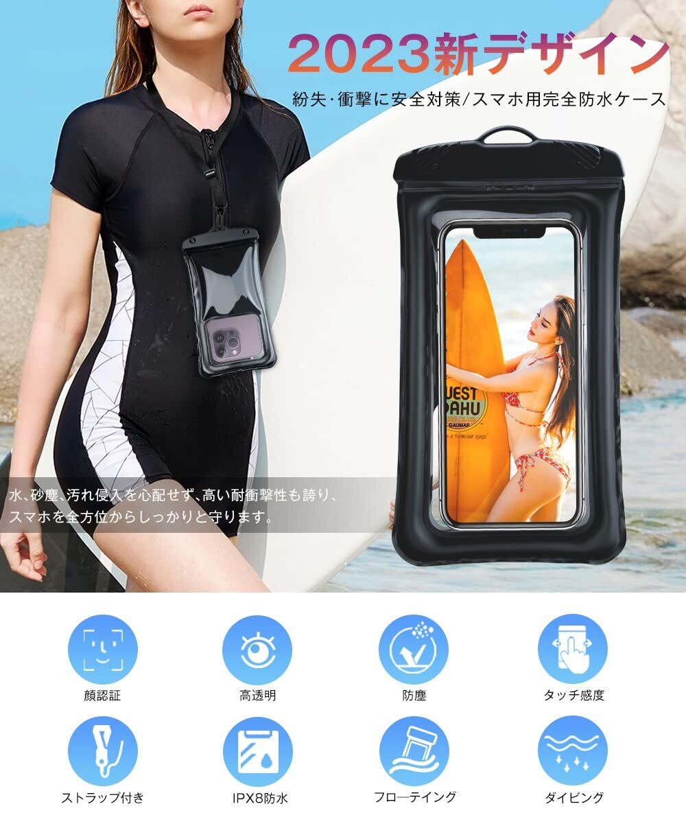 スマホ 防水ケース 水に浮く IP68認証 顔認証 撮影 通話 画面操作 浮き輪 iPhone 14 13 Pro Max 12 11 XR SE Android 7 インチ以下対応 タッチ快適 小物管理 お風呂 海 プール 水泳 温泉など適用 Androidに対応(ブラック)
