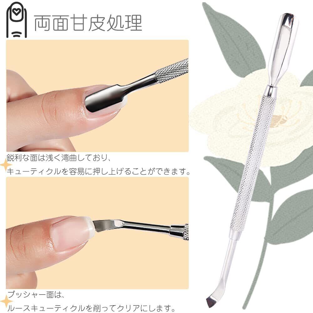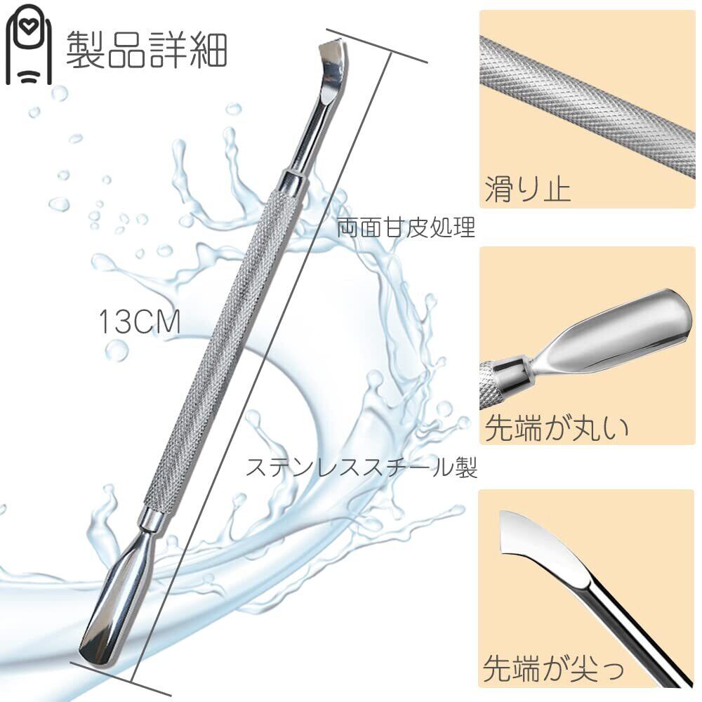 キューティクルプッシャー ネイルツール 1個セット 両面甘皮処理 甘皮ケア 甘皮の除去に 長さ13cm ステンレス製 耐久性 錆びに 滑り止 防水 使いやすい ネイルオフ ジェルネイル用 ネイル用品 (プッシャー&スクレーパー)