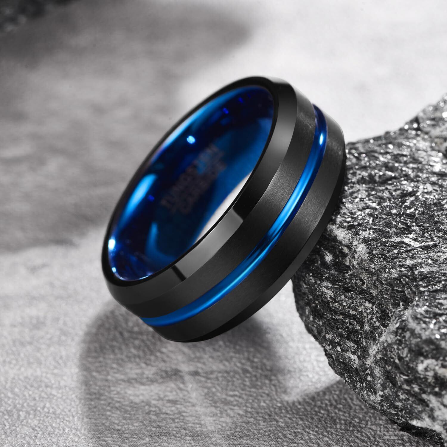 083基地 メンズ 指輪 リング マッド質感 8mm タングステン おしゃれ 日本サイズ ブルー 19号