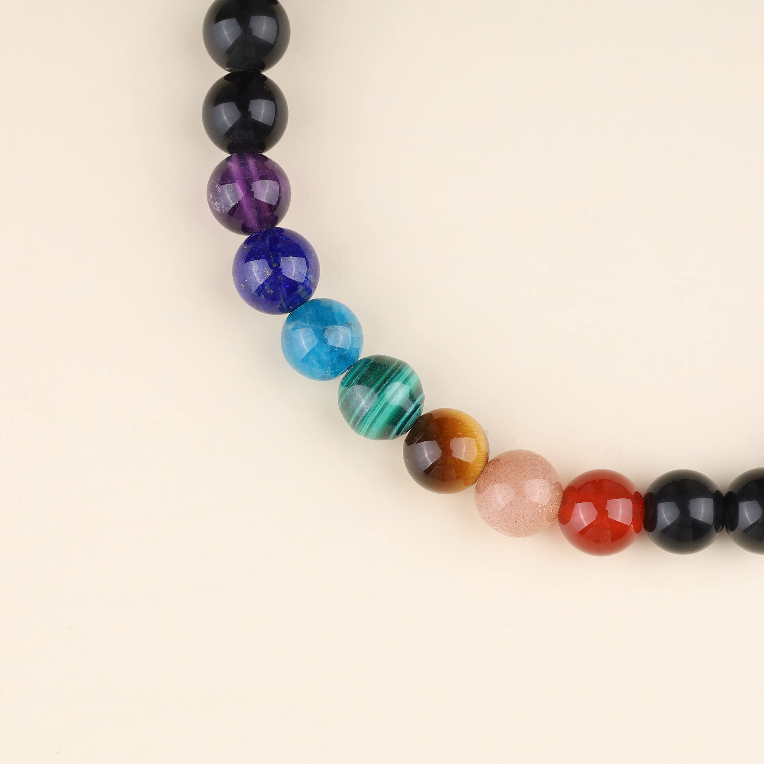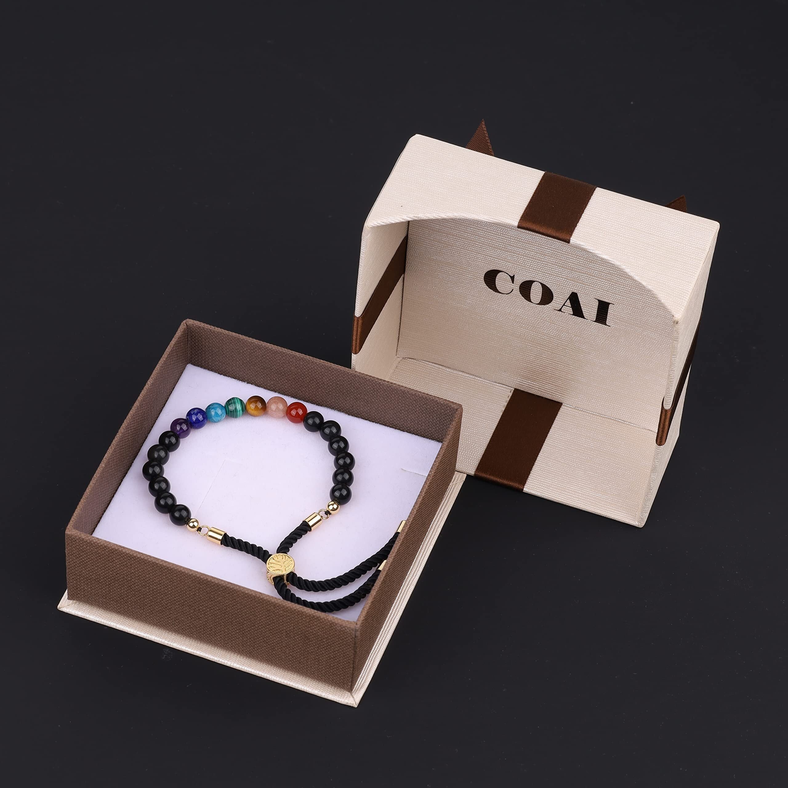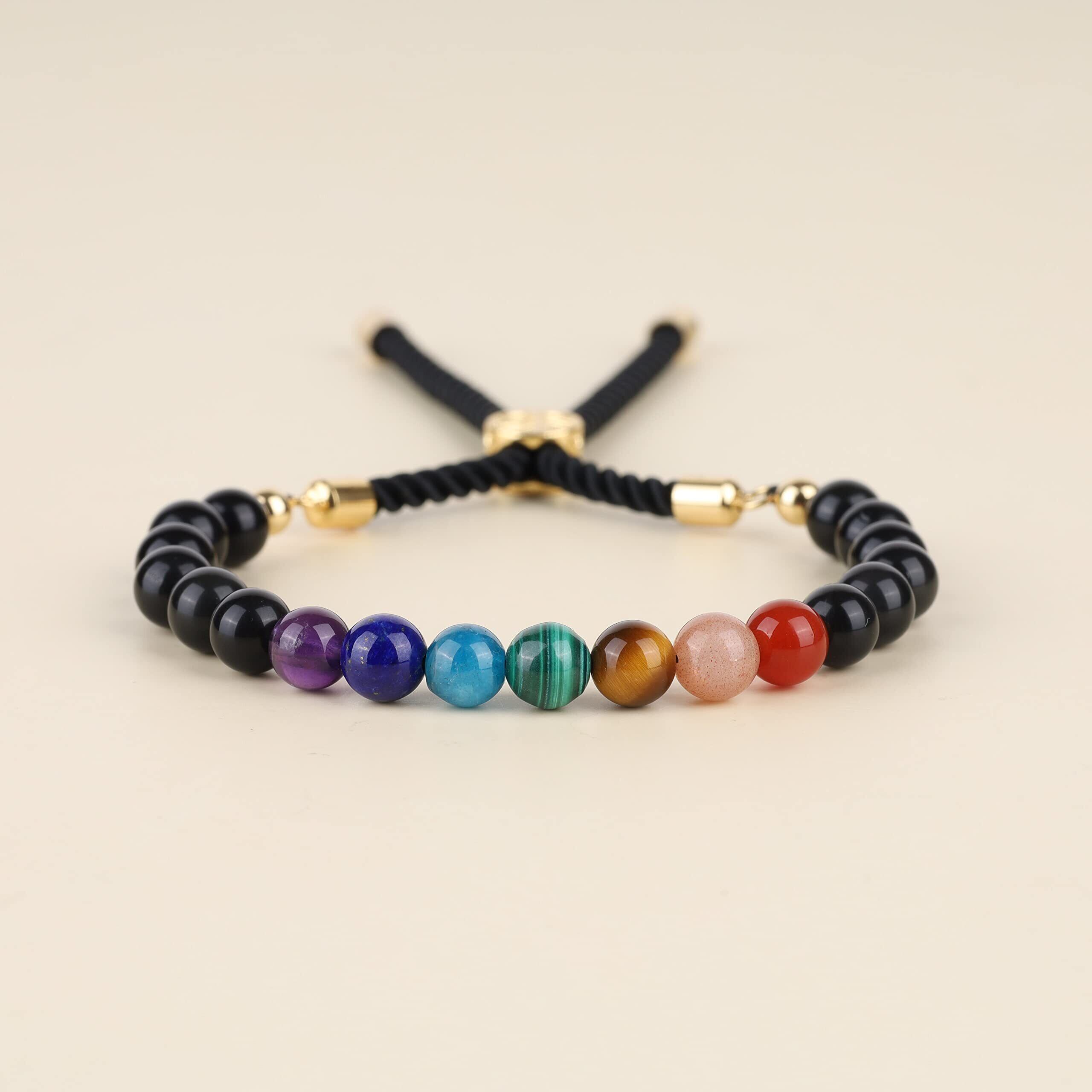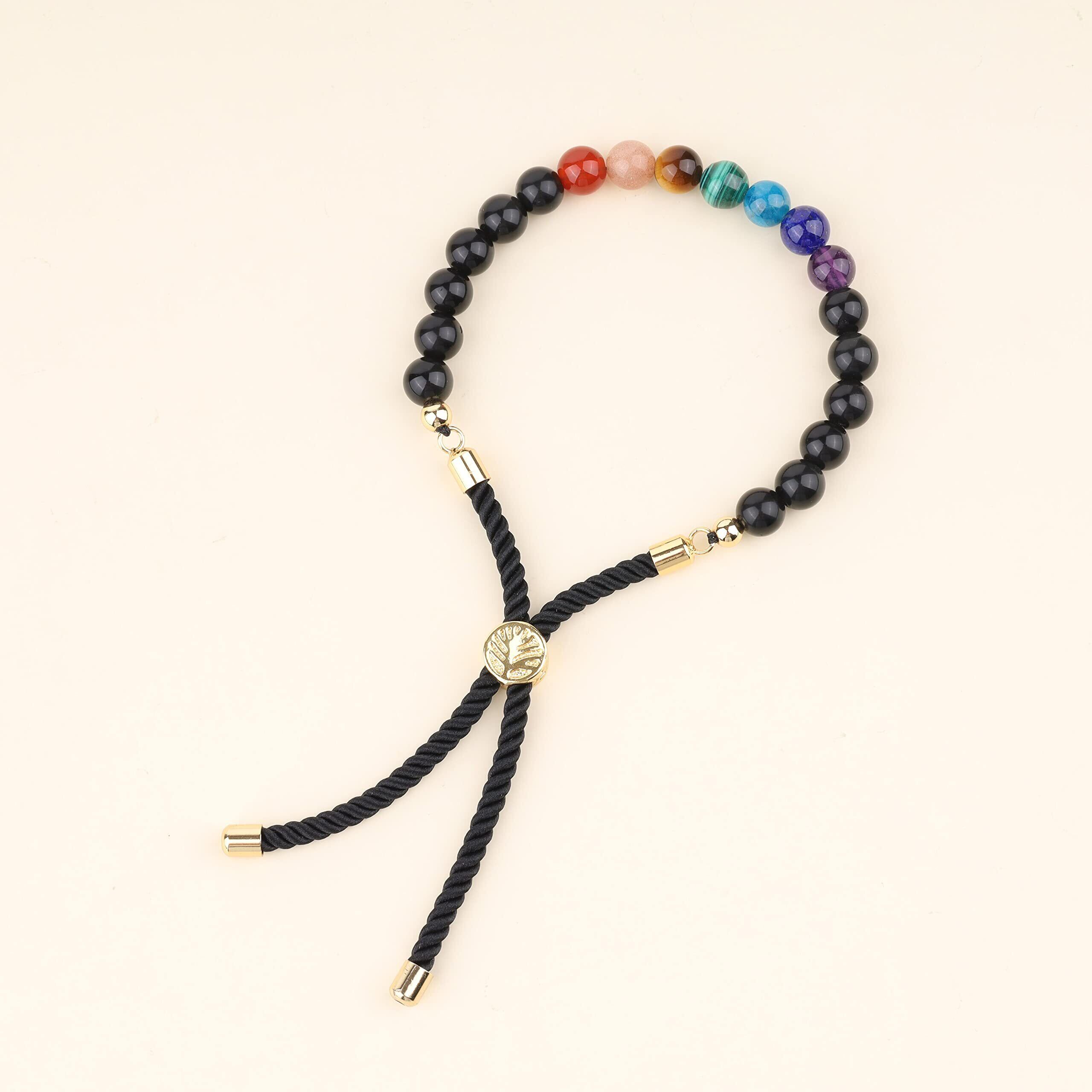 [コアイ] オブシディアン 七色チャクラ 命の木アジャスター パワーストーンブレスレット レディース