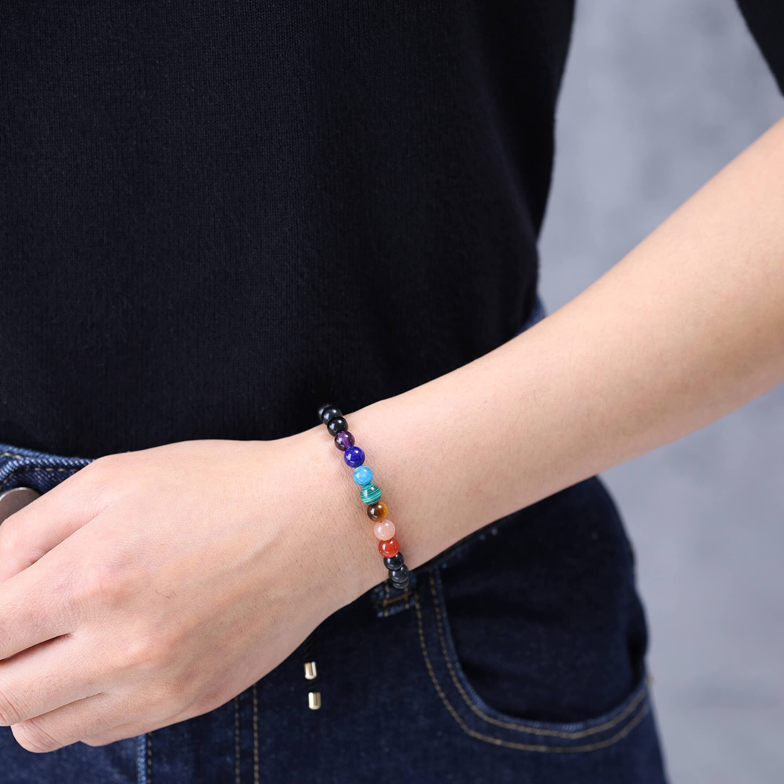 サイズ:6mmオブシディアン 6mmチャクラ玉 ブレスレット最大24cmまで調節可能