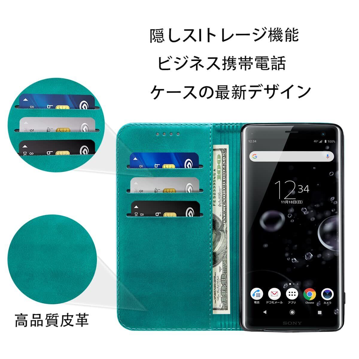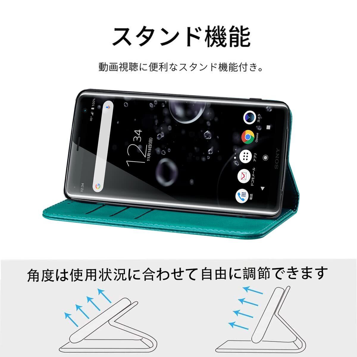 Xperia XZ3 ケース 手帳型 高質PUレザー SO-01L ケース Sony Xperia XZ3 カバー 耐衝撃 皮革 内蔵マグネット開閉式 ベルトなし スマホケース おしゃれ カードポケット スタンド機能 便利 スプラット同梱 携帯カバー(ターコイズ)