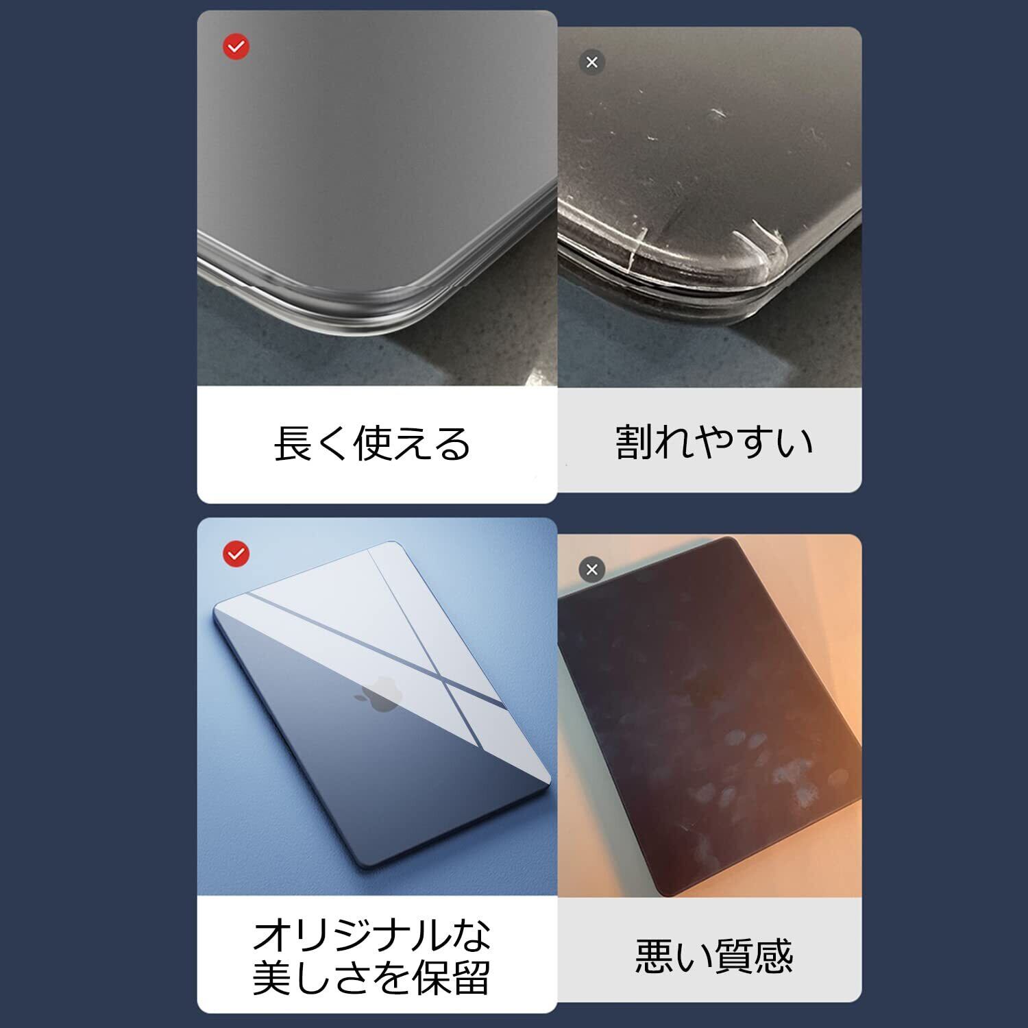【シンプルで透明なデザイン、長時間使用しても黄ばまない】このMacbook Air 13.6インチケースは高品質のポリカーボネート素材を使用しており、酸化防止に優れ、透明度が長く続き、長期間使用しても黄ばむことはありません。透明なデザイン、厚さわずか1.2mm、超軽量超薄、まるでカバーを着けていないかのように、Macbook Airの美しさを最大限に再現することができます。