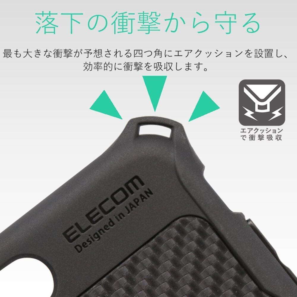 ■ケース背面から側面にかけてカーボン調のグリップテクスチャを施すことで、滑りにくくし持ちやすさを向上しています。