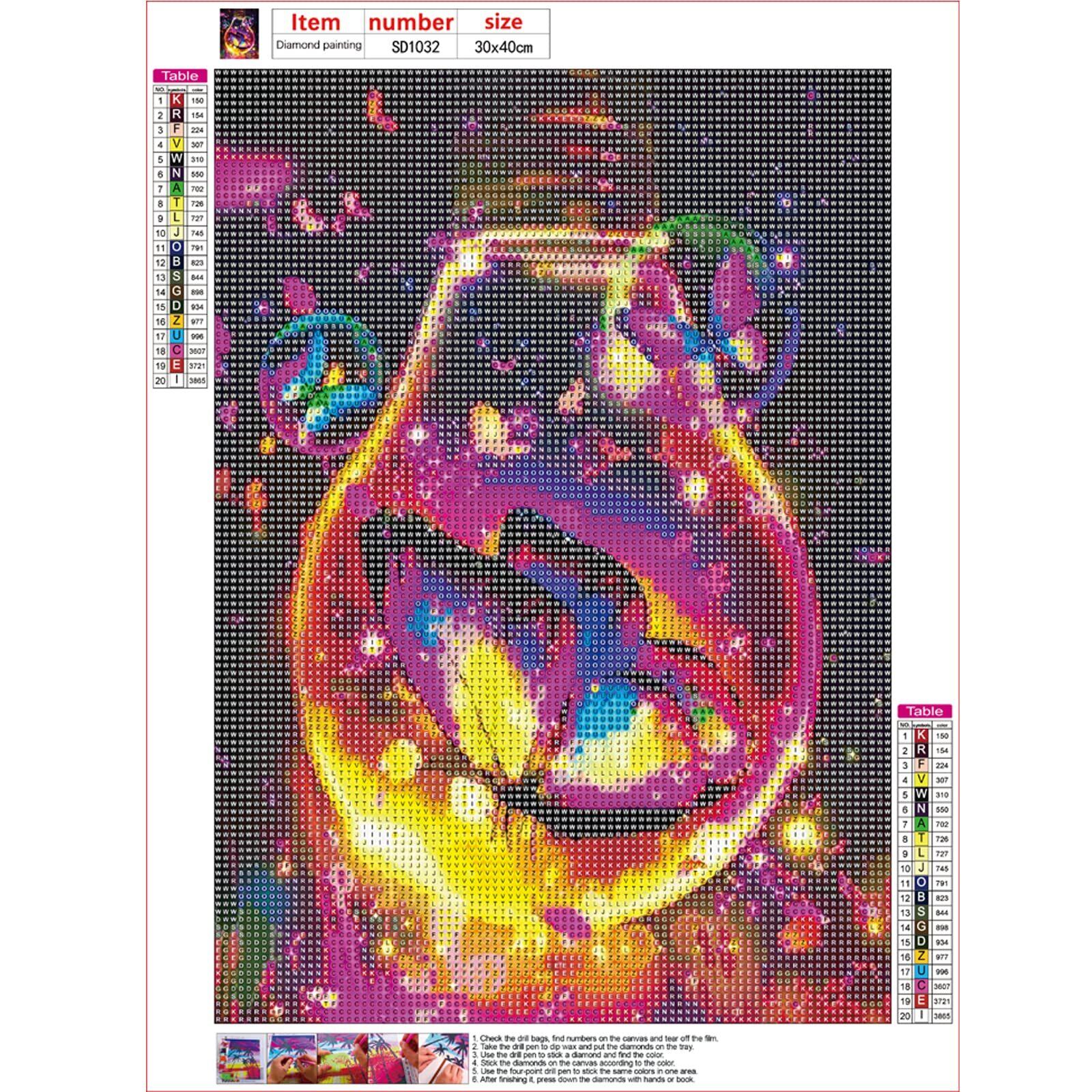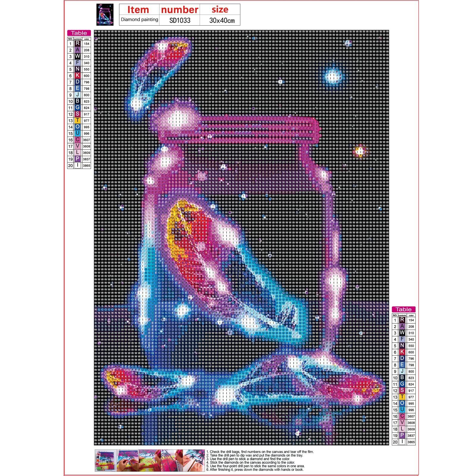 【作り方は簡単】ペン先をピンクのグルーを付けて台紙にビーズと同じ記号または英数字を貼り付けるだけでキラキラなダイヤモンドアートが仕上がります。クロスステッチ刺しゅうより気軽になり、集中力がUP、達成感もじゅうぶん味わっていただけます。